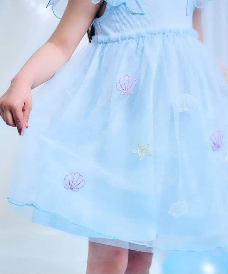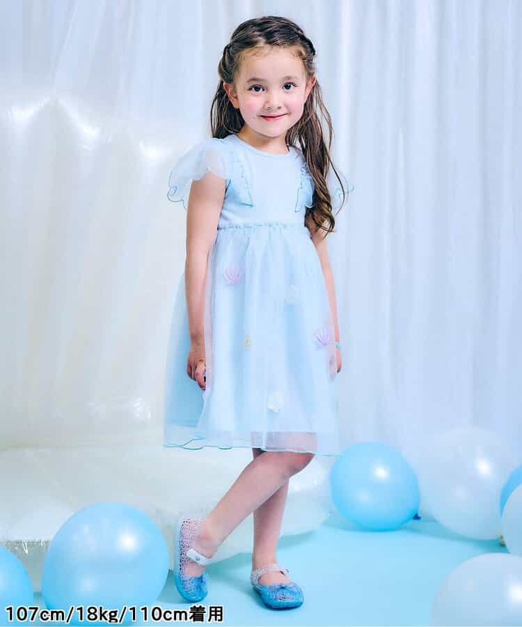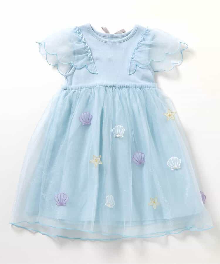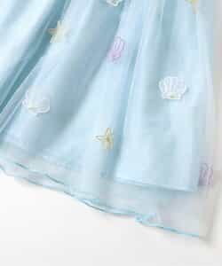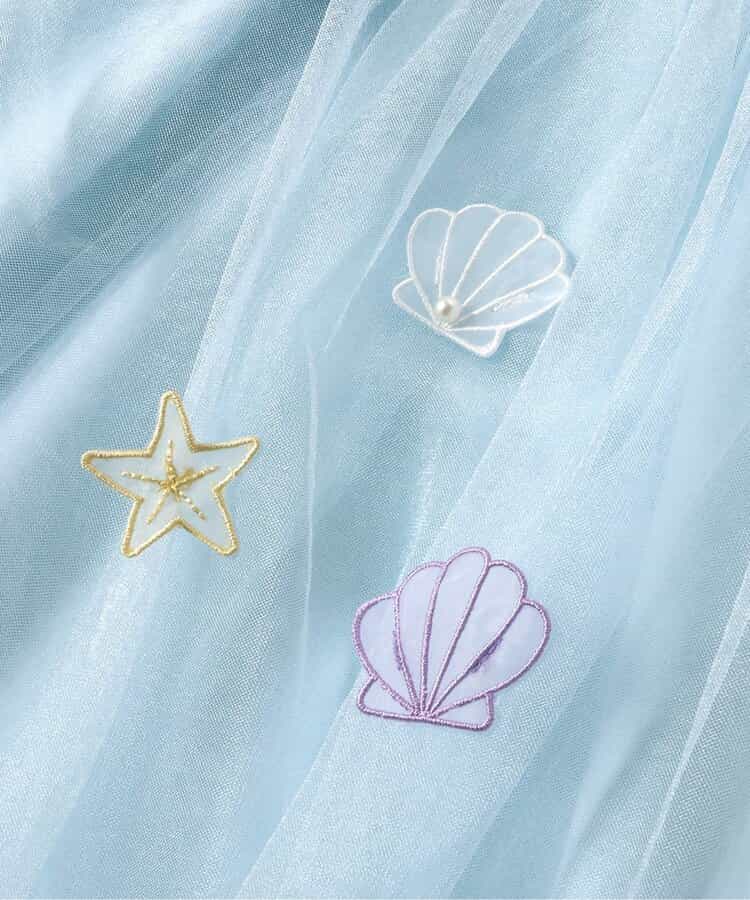 チュール部分にシェルや星の刺繍がされている上品見えするワンピース。
