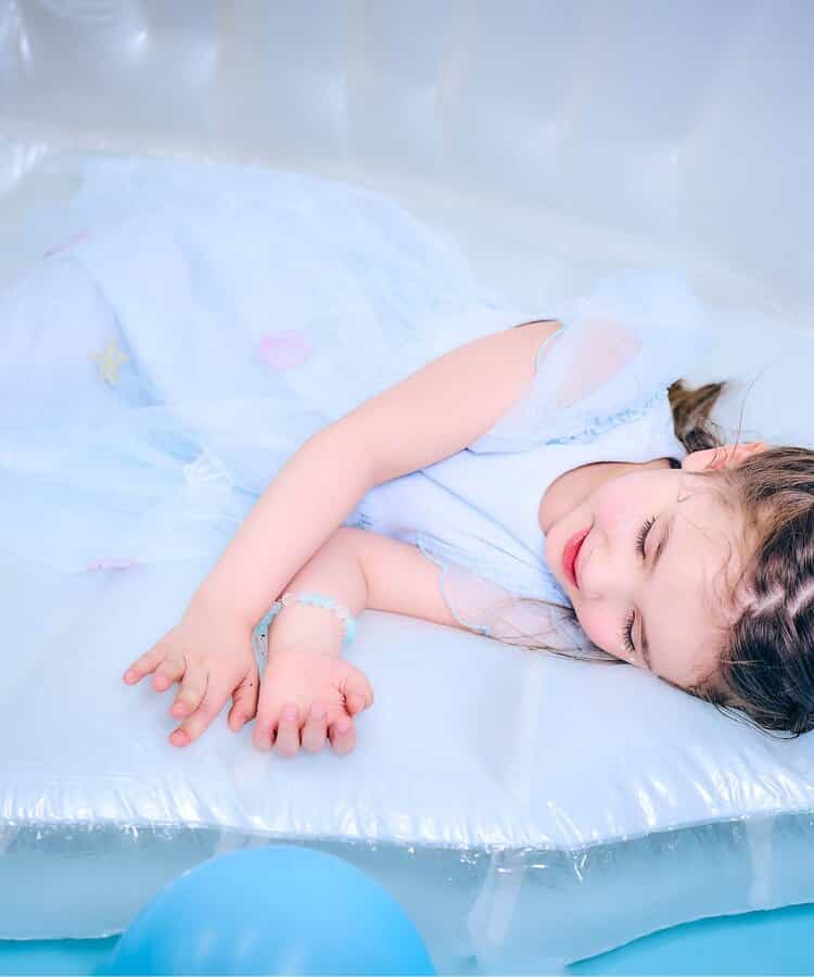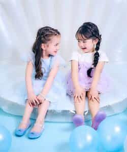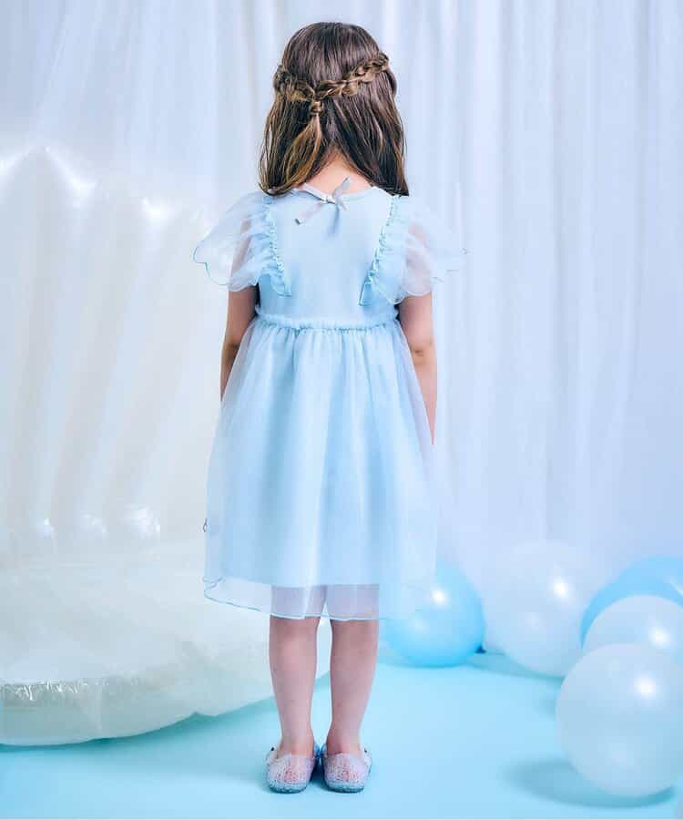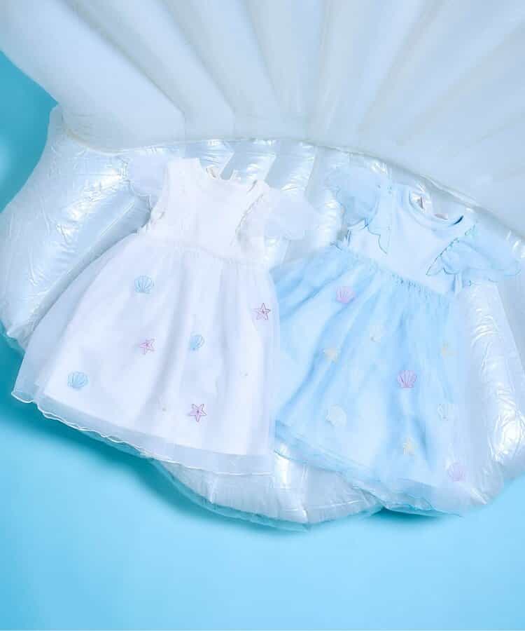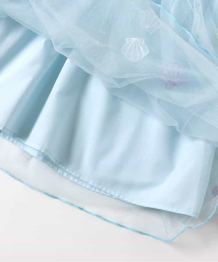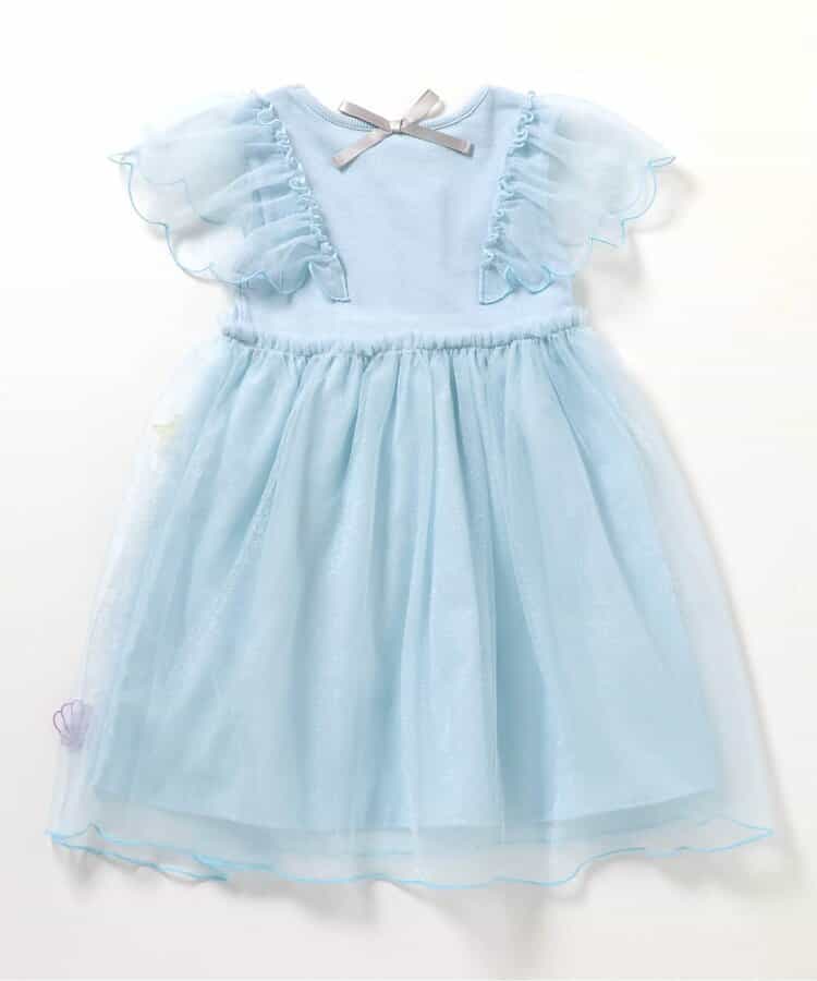 チュール部分にシェルや星の刺繍がされている上品見えするワンピース。