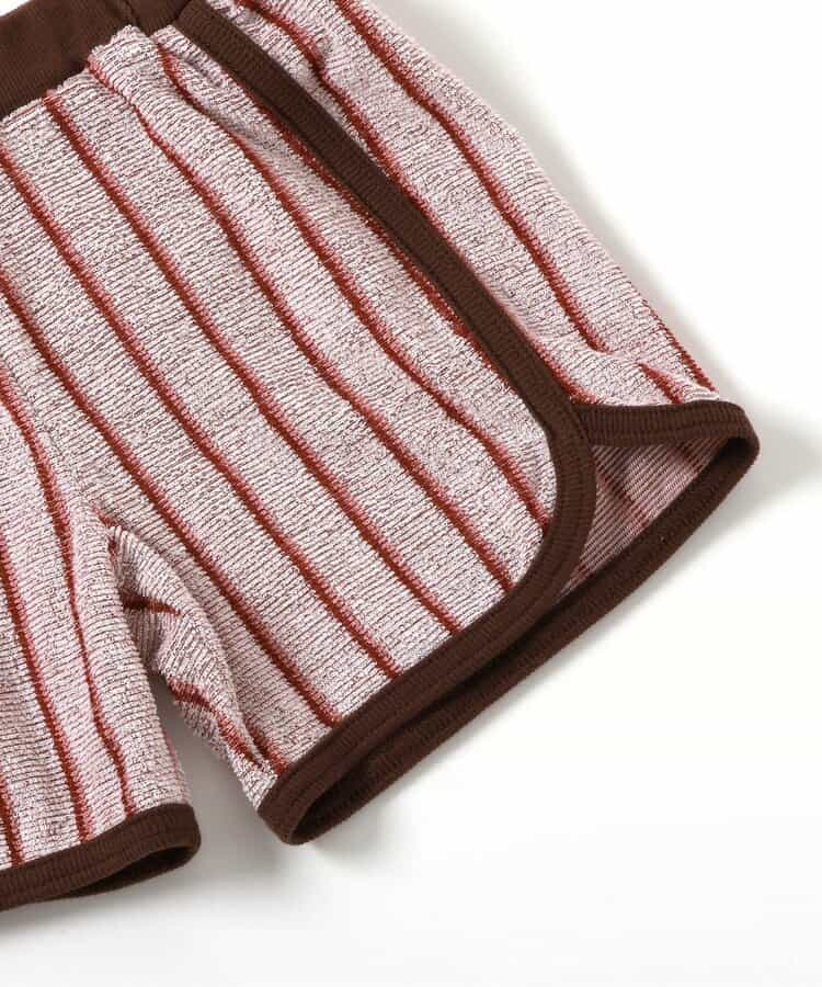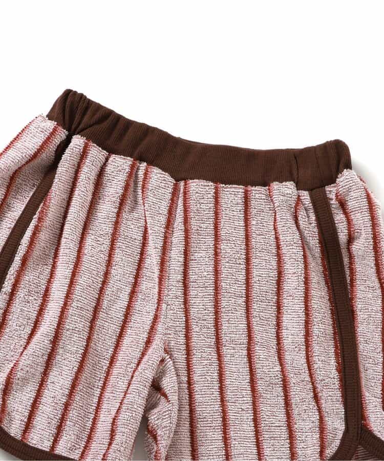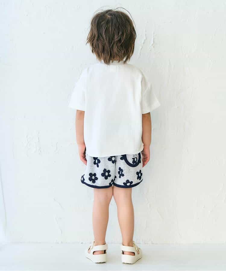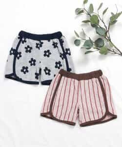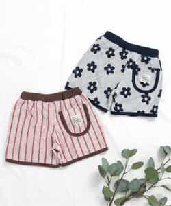 夏に人気のパイル生地でおとこのこにおすすめのパンツが登場♩モノトーンのお花柄、ブラウンのストライプ柄でおとこのこも かっこかわいく◎4分丈で見た目もすっきり!モノトーンのお花柄はベビーアイテムもございます♪お揃いの「フラワー柄パイルロンパス」はこちら >><お取り扱いのご注意>素材の特性上、過度の力(引っかけや摩擦等)がかかることにより、ループが飛び出したり、ほつれることがあります。出来るだけ美しくご利用頂くために次のことにご留意下さい。○ 過度の力がかからない様に着用、着脱には十分ご注意下さい。○ 押し洗いを推奨いたします。○ 形を整えてから干して下さい。