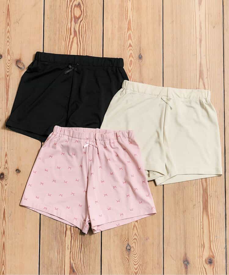 接触冷感でひんやり快適♪シンプルな、ブラック、ベージュと総柄リボンデザインのピンクの3色展開。接触冷感や吸水速乾機能付きなので、スカートやワンピース、ショートパンツの下に履いても蒸れにくくなっています。