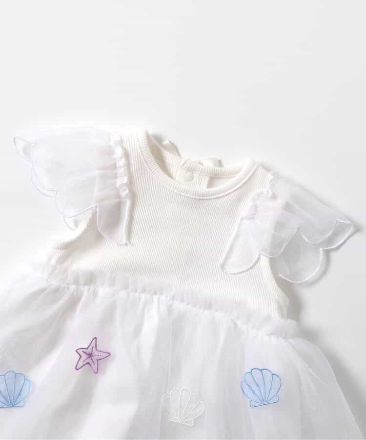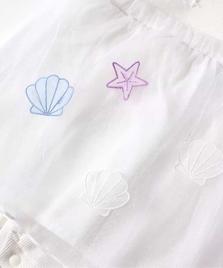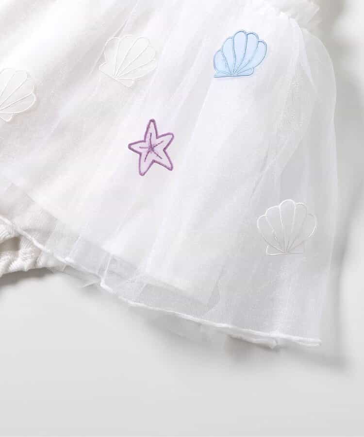 チュール部分にシェルや星の刺繍が施されたとってもかわいいデザインに。