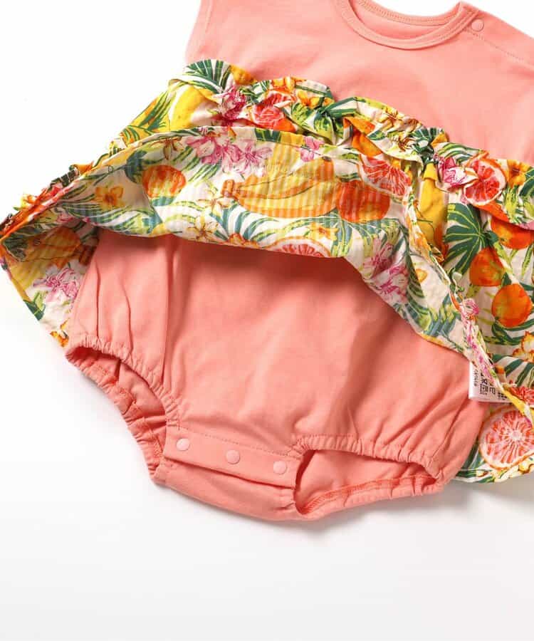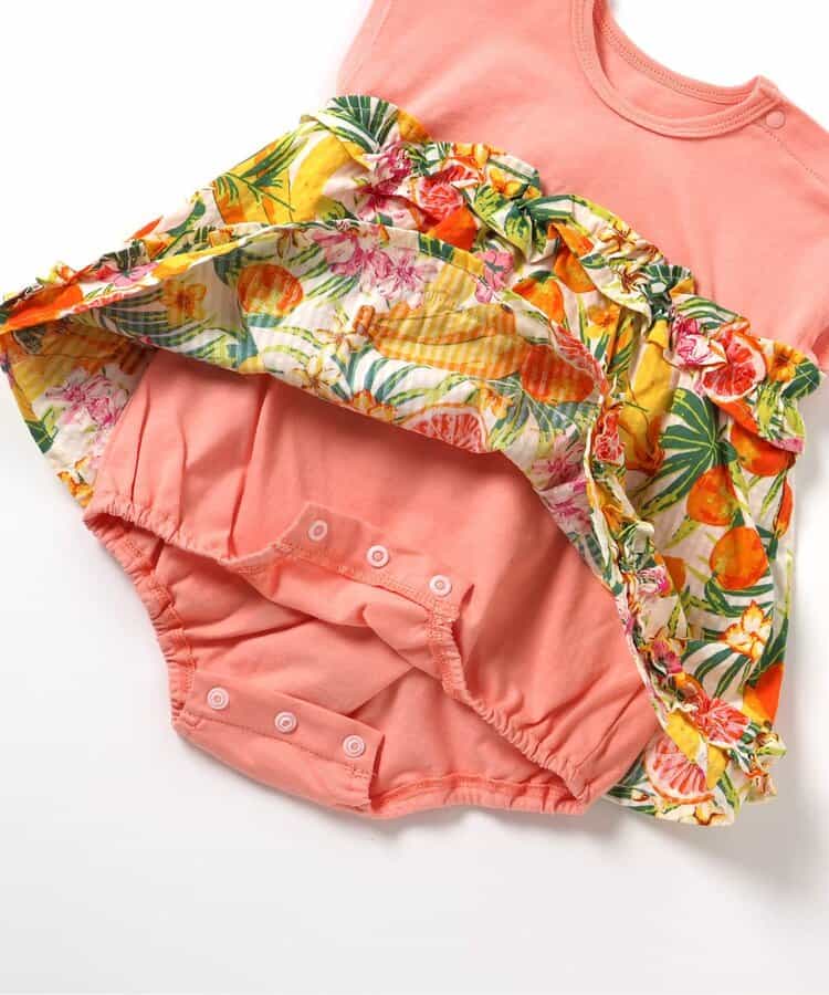 apres les cours(アプレレクール)のカバーオール・ロンパース「【リンク】フリルドッキングロンパス」は、やさしいニュアンスのナチュラルなデザイン。ベビーギフトや出産祝いの主役にも♪