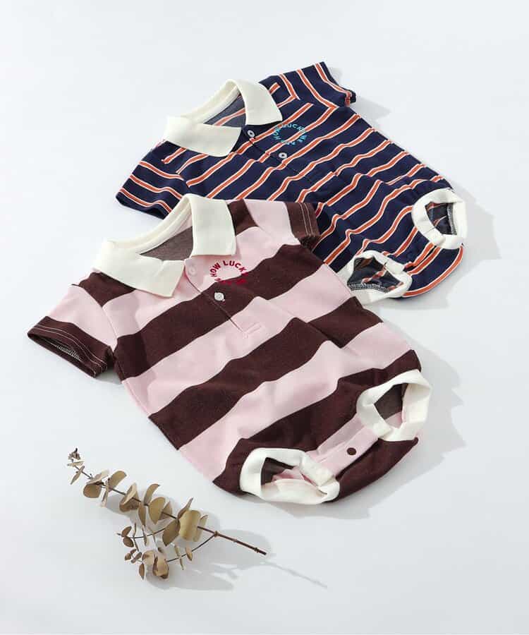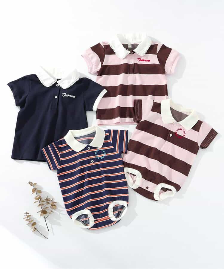 【4/30(木)21:00~販売】apres les cours(アプレレクール)のカバーオール・ロンパース「ポロシャツボディースーツ」は、やさしいニュアンスのナチュラルなデザイン。ベビーギフトや出産祝いの主役にも♪