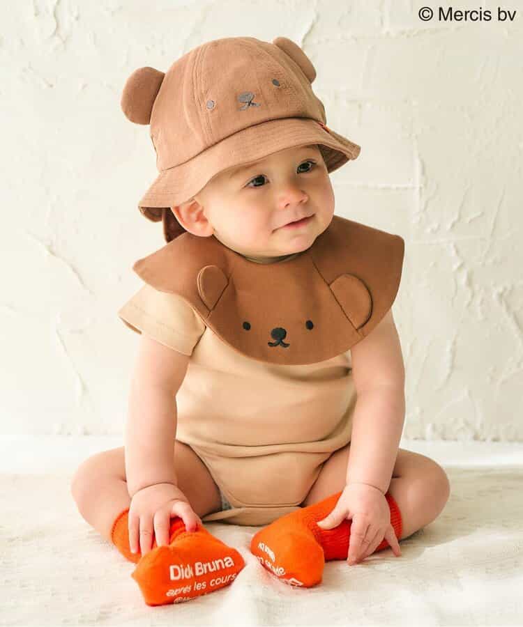 ≪子供服 apres les coursの「ディック・ブルーナ」コレクション≫きゅんとする可愛さがたまらない・・・♪ミッフィーとボリスが帽子になって登場!首元には日よけがついているので、日焼け対策もバッチリ◎衿付きボディースーツと合わせたコーデがおすすめです。ミッフィーとボリスと一緒におでかけを楽しもう♪▼おすすめアイテムはこちらV334915 Dick Bruna 衿付きボディスーツ