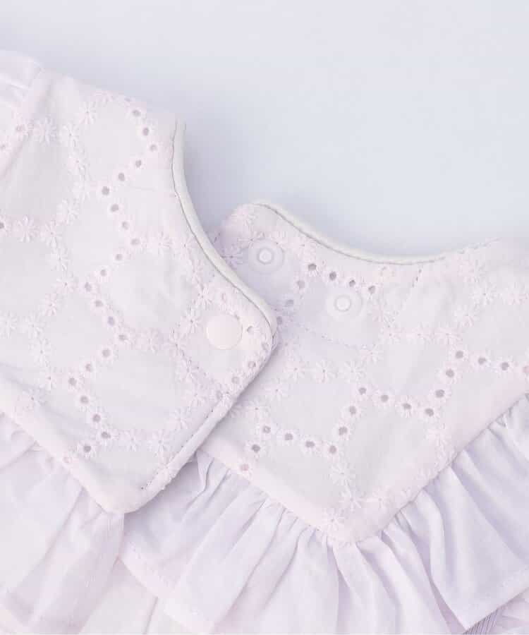 【5/8(木)21:00~販売】apres les cours(アプレレクール)のスタイ・エプロン「レースフリルスタイ」は、おようふくとのスタイリングも楽しめるデザインで、ベビーギフトや出産祝いにもおすすめ*