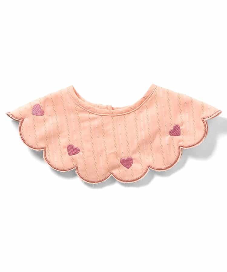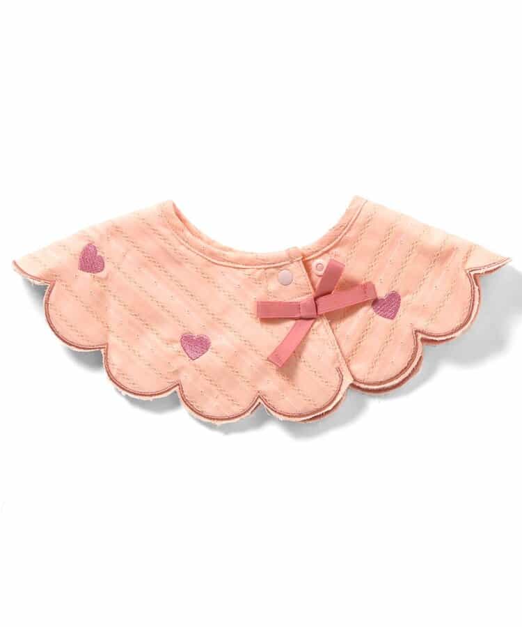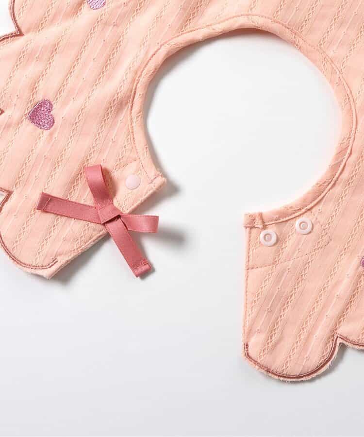 【3/31(火)21:00~販売】apres les cours(アプレレクール)のスタイ・エプロン「ハート・リボン刺繍まんまるスタイ」は、おようふくとのスタイリングも楽しめるデザインで、ベビーギフトや出産祝いにもおすすめ*