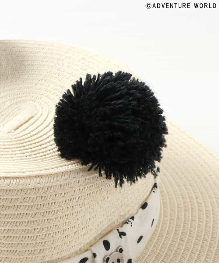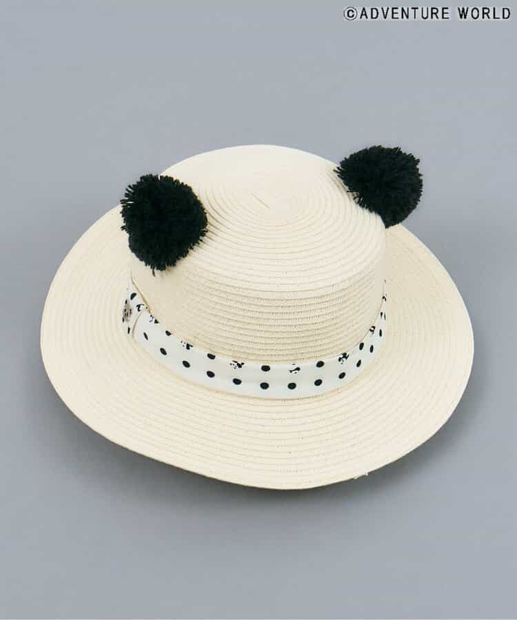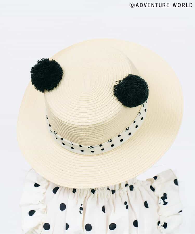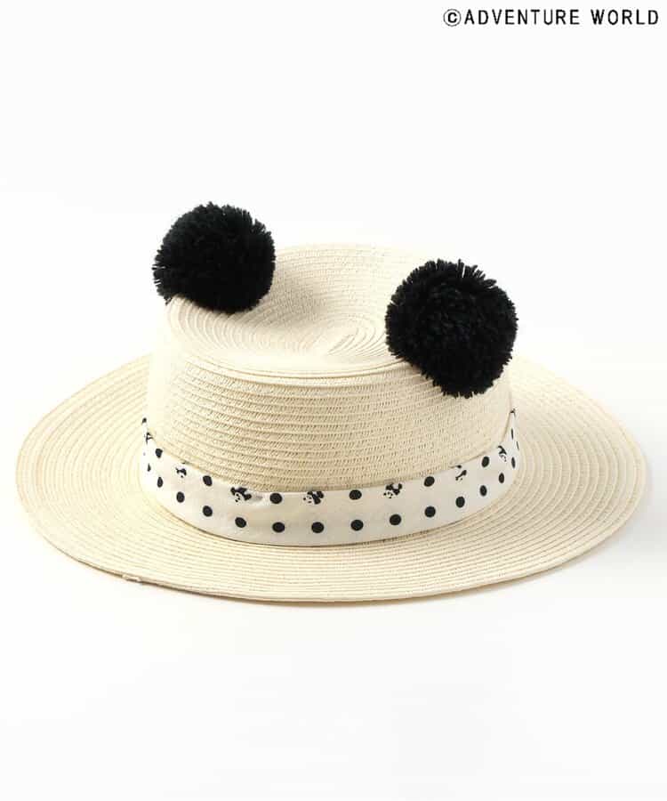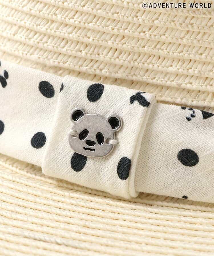 【7/1(火)お昼12:00~販売】≪子供服 apres les coursの「アドベンチャーワールド」コレクション≫前回大好評のアドベンチャーワールドコラボが再登場★パンダの耳付きカンカン帽はコーディネートのアクセントに♪リボンはパンダとドットの総柄デザインでとってもキュート。男の子も女の子もご利用いただけます♪<お取り扱いのご注意>ざっくりとした編地を使用している為、1点ごとにサイズや編み目の形状が微妙に異なりますが、これは、この製品の特徴です。