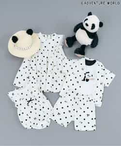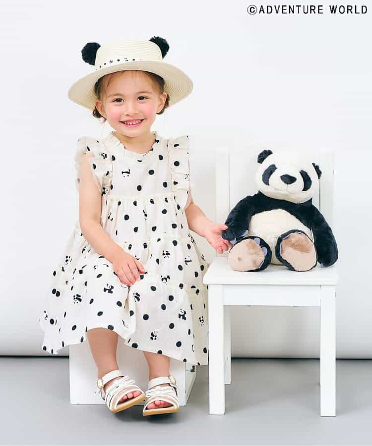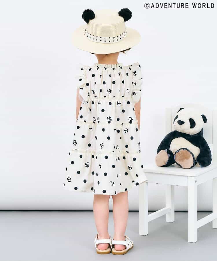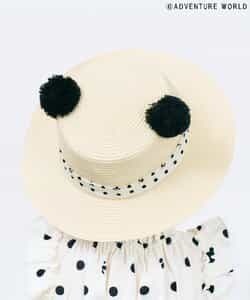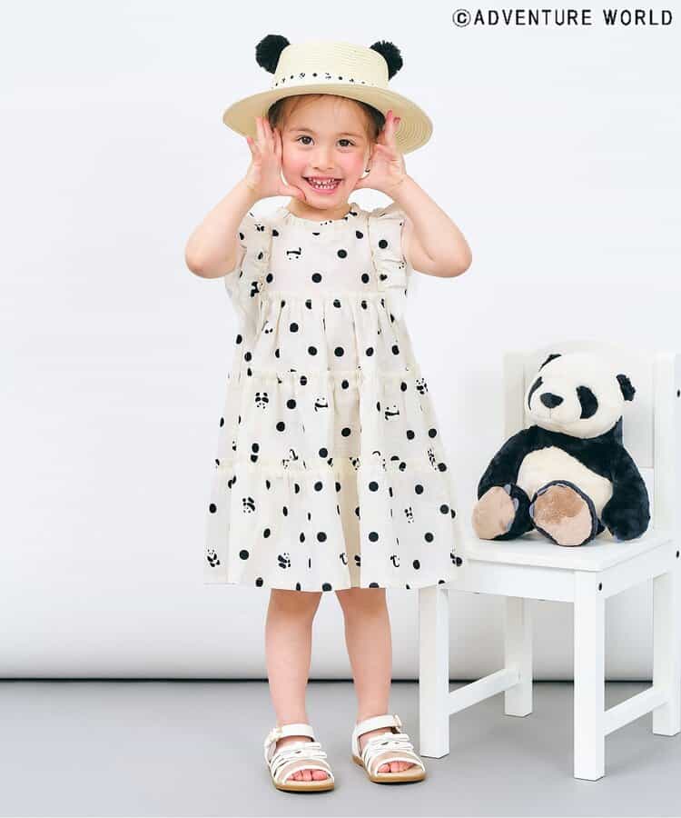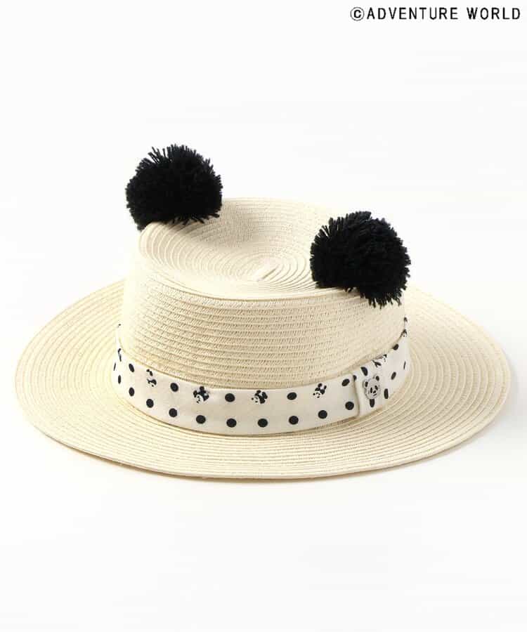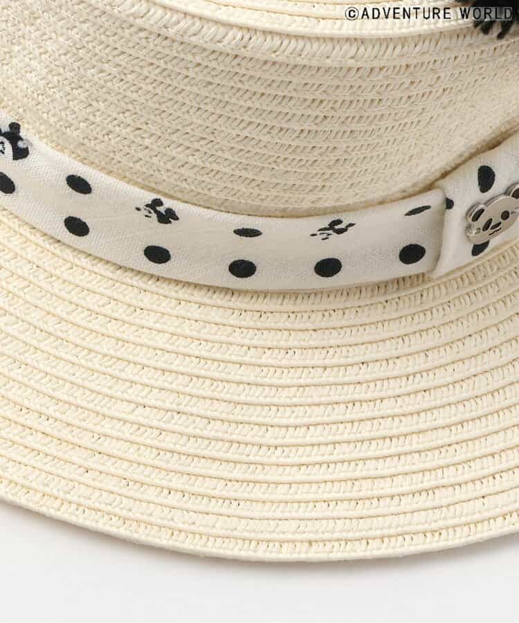 【7/1(火)お昼12:00~販売】≪子供服 apres les coursの「アドベンチャーワールド」コレクション≫前回大好評のアドベンチャーワールドコラボが再登場★パンダの耳付きカンカン帽はコーディネートのアクセントに♪リボンはパンダとドットの総柄デザインでとってもキュート。男の子も女の子もご利用いただけます♪<お取り扱いのご注意>ざっくりとした編地を使用している為、1点ごとにサイズや編み目の形状が微妙に異なりますが、これは、この製品の特徴です。