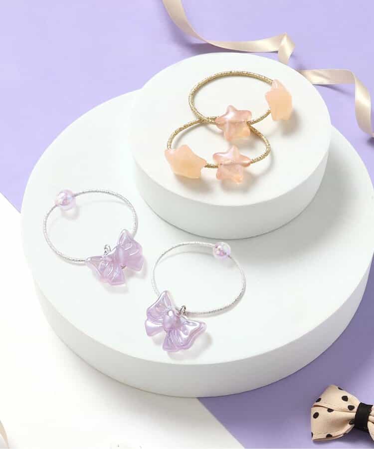 apres les cours(アプレレクール)のアクセサリー「星・リボンモチーフヘアゴムセット」は、どんなウェアとも相性抜群!暗いところでほんのり光る【蓄光】仕様で、浴衣や甚平コーデなど夜のお祭りやお出かけにもおすすめです*