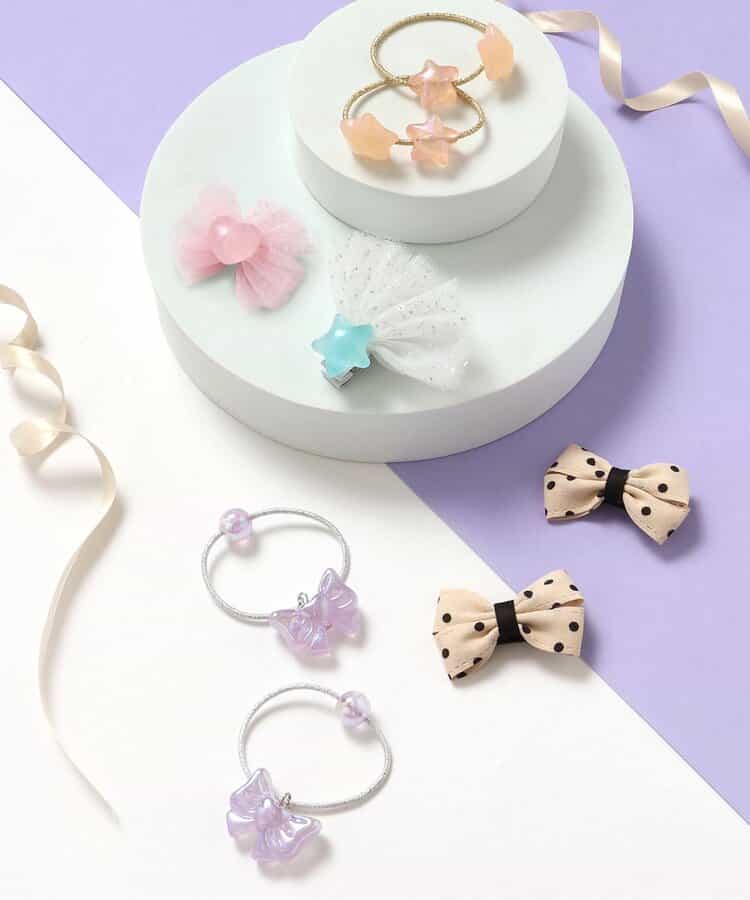 apres les cours(アプレレクール)のアクセサリー「星・ハートモチーフチュールヘアクリップ」は、どんなウェアとも相性抜群!浴衣や甚平など夏のお祭りコーデにもぴったりの華やかなヘアアクセサリー♪チュール素材とモチーフの組み合わせが可愛らしさを引き立てます。暗いところでほんのり光る【蓄光】仕様で、浴衣や甚平コーデなど夜のお祭りやお出かけにもおすすめです*