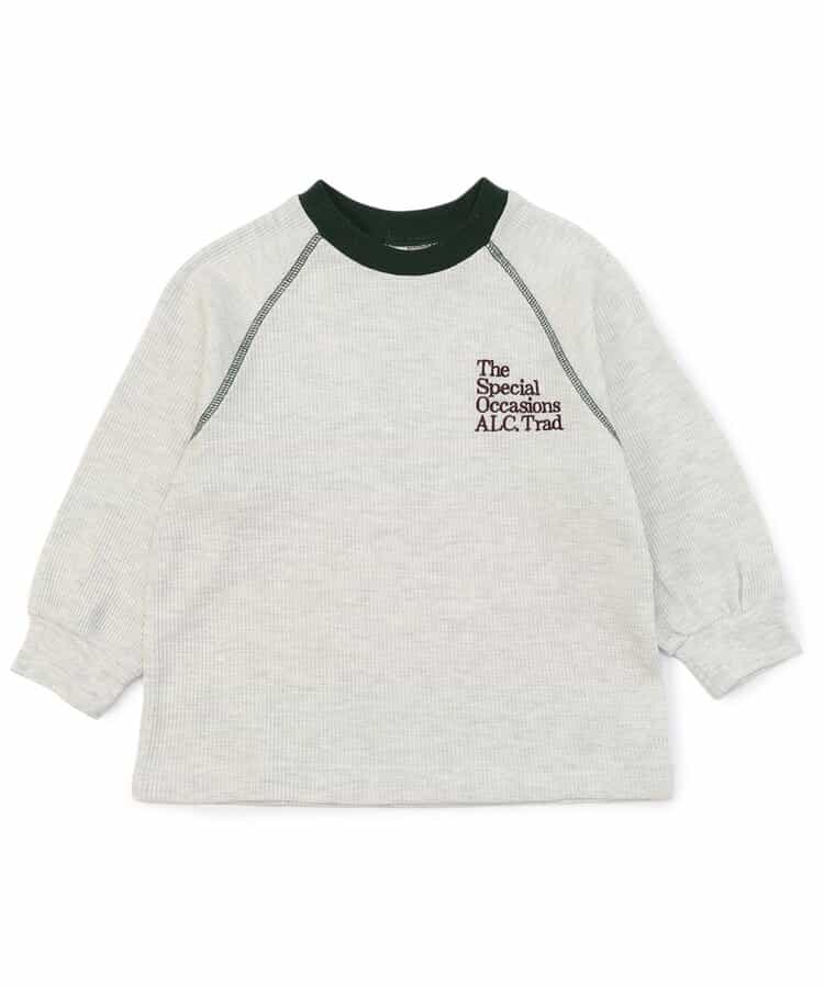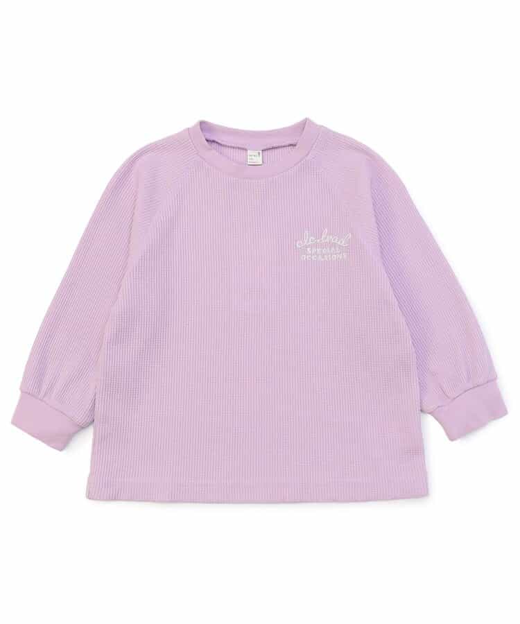 apres les cours(アプレレクール)の長袖Tシャツ「ワンポイントロゴワッフルTシャツ」は、ナチュラルなスタイルにさりげなくデザインをプラスしたおしゃれアイテム*