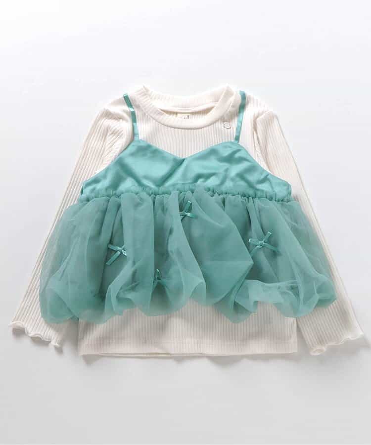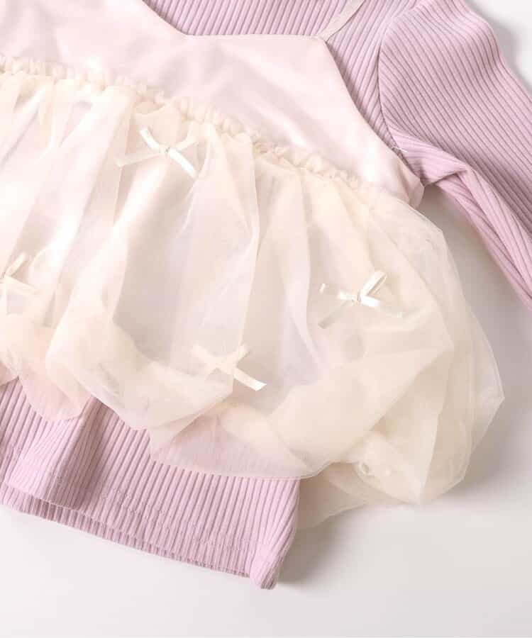 apres les cours(アプレレクール)の長袖Tシャツ「【リンク】バルーンチュールキャミドッキングTシャツ」は、ナチュラルなスタイルにさりげなくデザインをプラスしたおしゃれアイテム*