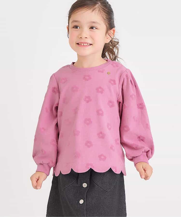 【10/1(水)21:00~販売】apres les cours(アプレレクール)の長袖Tシャツ「フラワージャガードスカラップTシャツ」は、ナチュラルなスタイルにさりげなくデザインをプラスしたおしゃれアイテム*