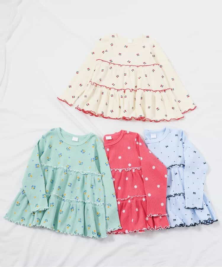 apres les cours(アプレレクール)の「WEB限定 ワッフルティアードTシャツ」は、ナチュラルなスタイルにさりげなくデザインをプラスしたおしゃれアイテム*通園・通学用にもおすすめです♪