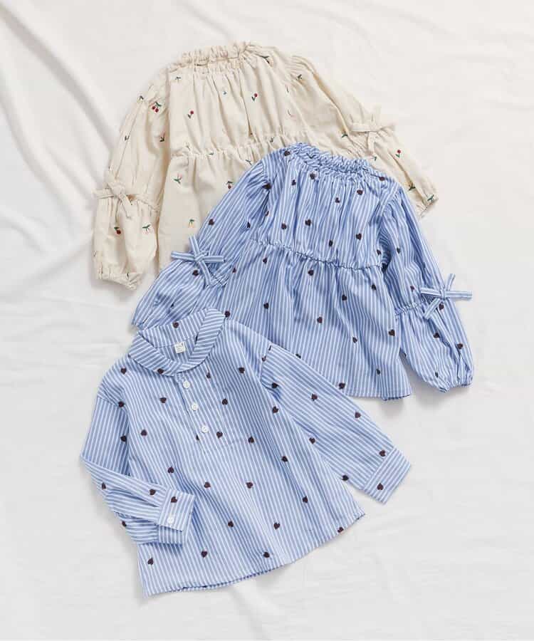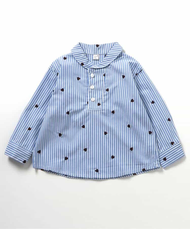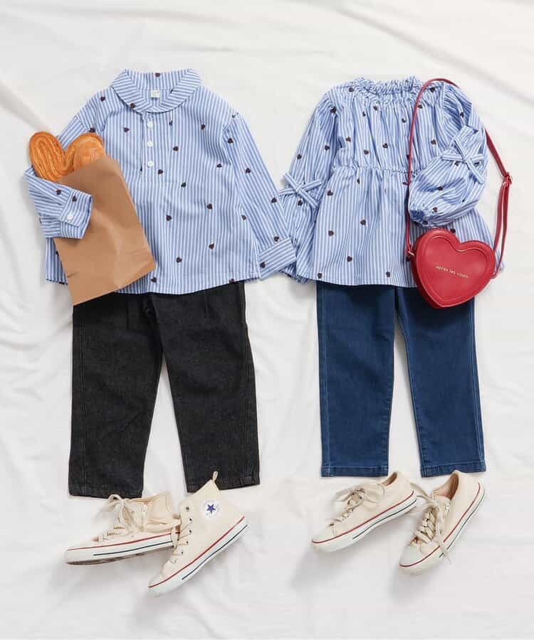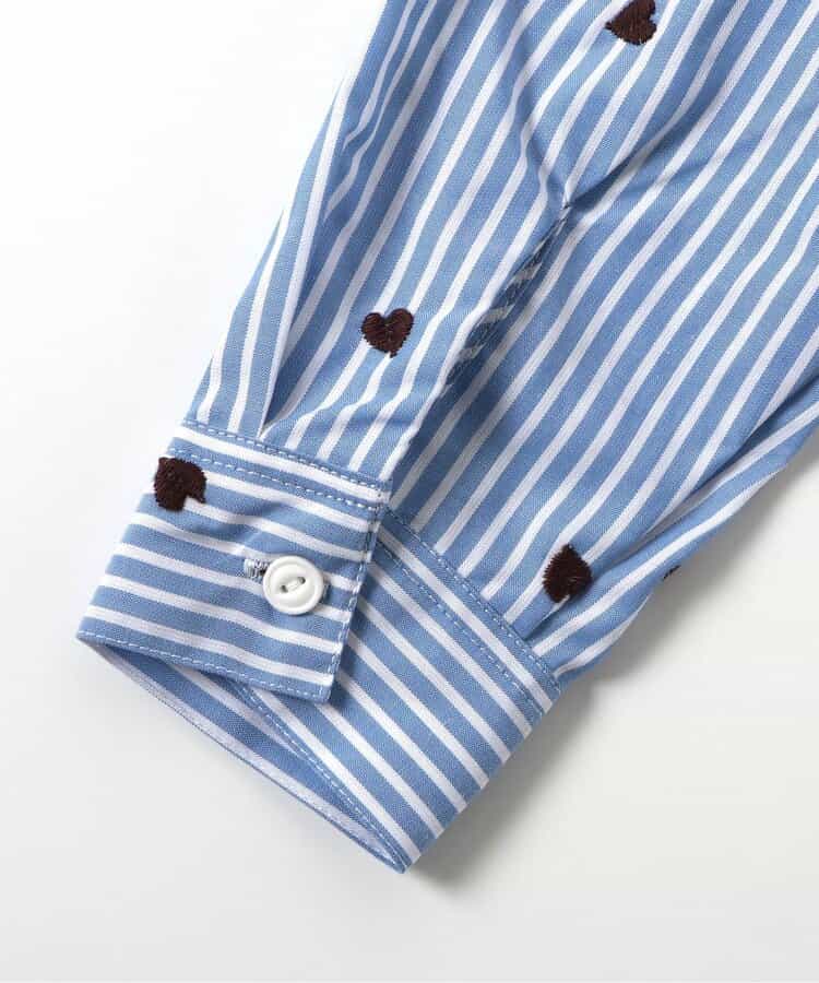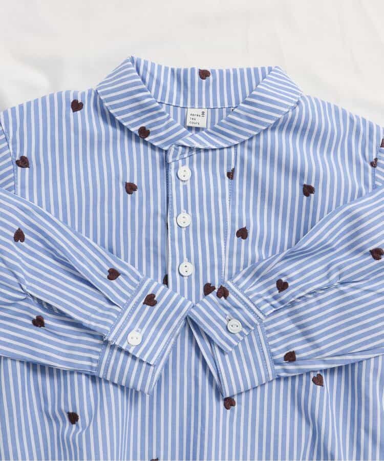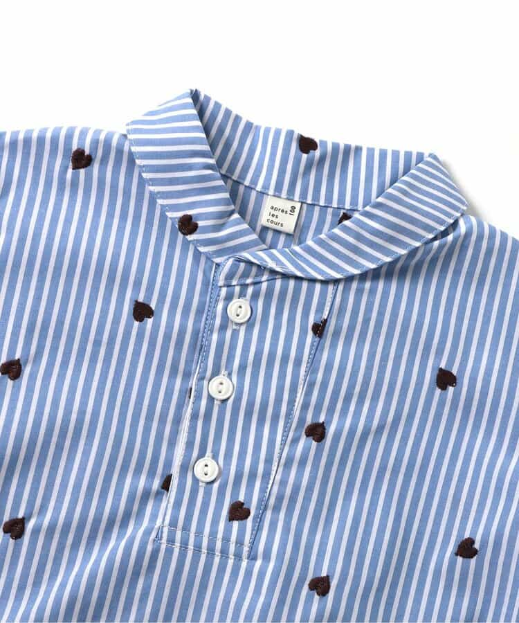 【8/28(木)21:00~販売】apres les cours(アプレレクール)の「【リンク】ハート刺繍ストライプシャツ」は、ナチュラルなスタイルにさりげなくデザインをプラスしたおしゃれアイテム*通園・通学用にもおすすめです♪