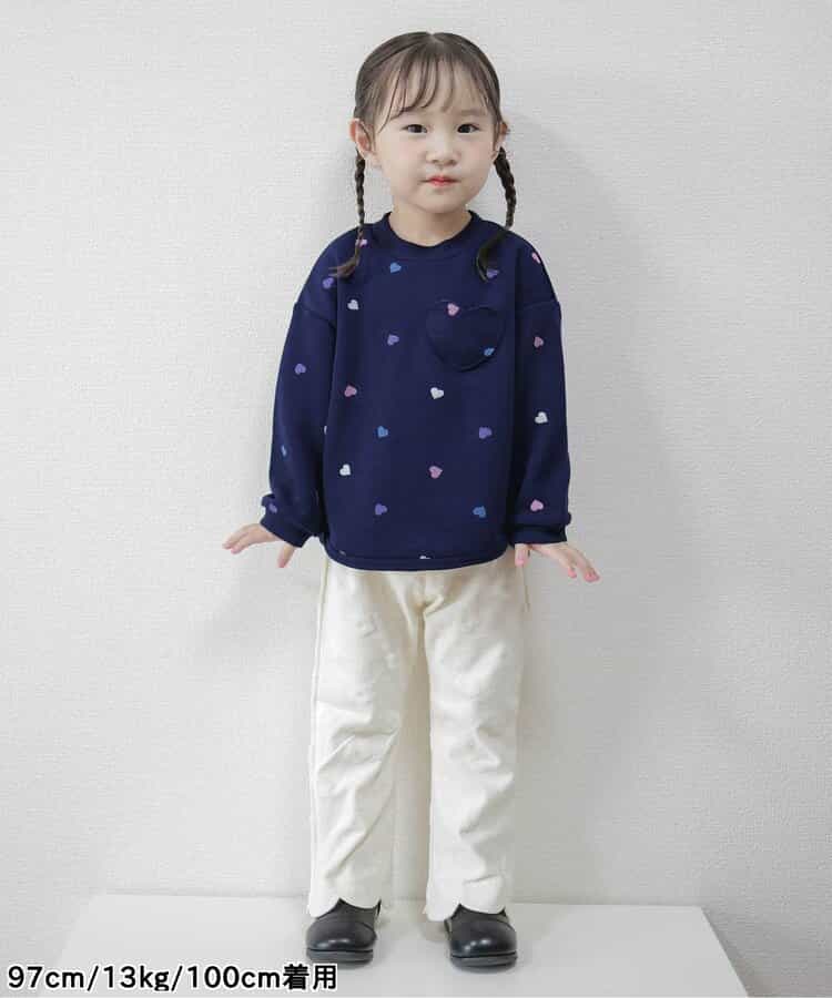 身長80cm弱で90センチを着用しています。少し大きめではありますが、手首のところが絞ってあるので手が隠れちゃうこともなく可愛いオーバーサイズで着られています。生地感も程よい厚みで秋始まりから着て中にシャツなど着たら冬でも着られそうです♪プリントかと思いきやポケットになってるデザインがとっても可愛いです♡私も娘も気に入ってます!#PR