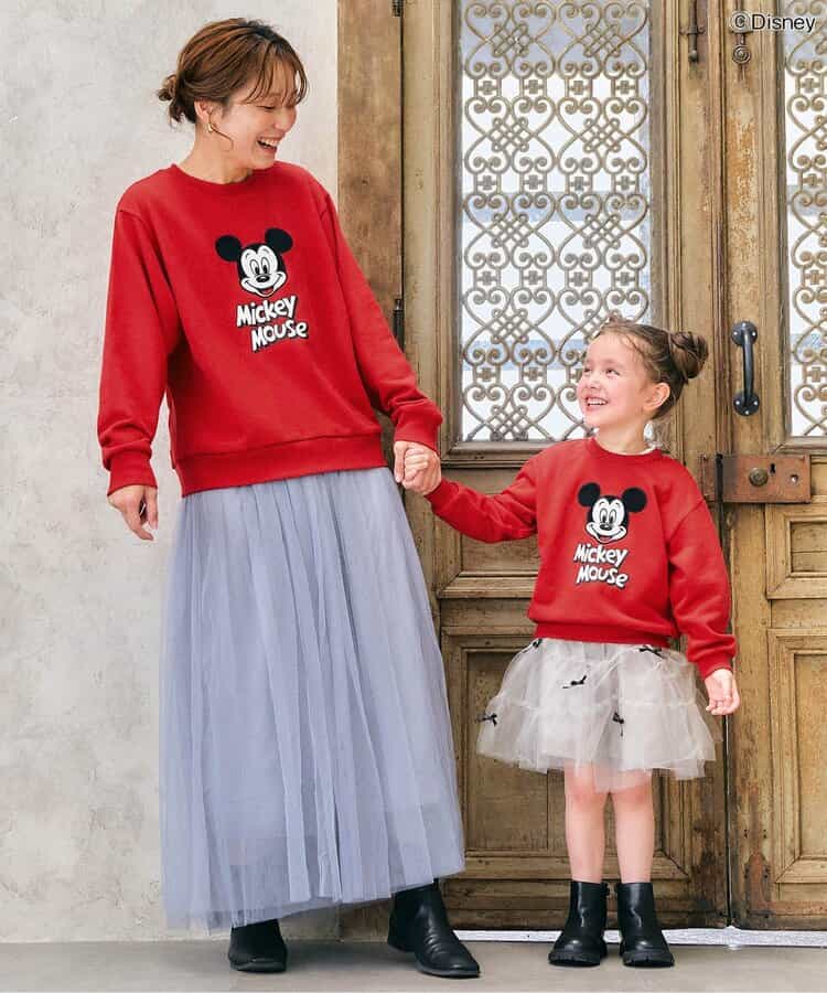 【8/25(月) 10:00~販売予定】≪子供服 apres les coursの「ディズニーコレクション」≫キッズとお揃いコーデが楽しめる、ちょっぴりレトロな裏毛トレーナーが登場♪デザインが違う2色展開。大人も着やすいちょっぴりレトロなデザインは、1枚ではもちろん、シャツやフリルのインナーを合わせた重ね着コーデもおすすめ!ファミリーリンクコーデで秋のお出かけを楽しもう♪大人サイズのトレーナーはこちら>>ディズニーコレクション一覧はこちら>><お取り扱いのご注意>この商品は着用中の摩擦や洗濯により毛羽の乱れ、毛羽脱落、毛玉が生じることが有ります。できるだけ美しくご利用頂く為に次のことにご留意下さい。○毛玉は毛玉取り器またはハサミで丁寧にカットして下さい。○毛羽が他に付着した際はテープやブラシで除去して下さい。○他の製品とは洗わず、単独でお洗濯して下さい。○タンブル乾燥はお避け下さい。この商品のプリント部分は洗濯を繰り返すことにより、起毛・光沢が徐々に消失、ひび割れ、脱落することがあります。出来るだけ美しくご利用頂くために次のことにご留意下さい。○ 洗濯、保管の際、プリント面同士が重ならない様にご注意下さい。○ プリント部分のもみ洗いやタンブル乾燥機の使用はお避け下さい。○ 洗濯後、すみやかに広げて下さい。○ 脱水は弱く、形を整えてから干して下さい。○ プリント部分にアイロンを当てないで下さい。