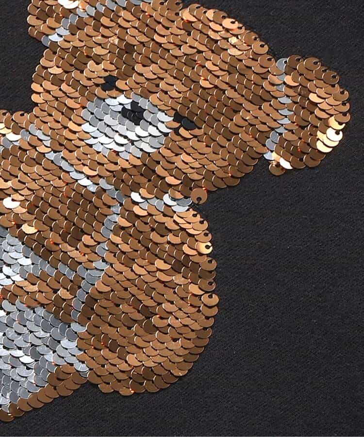 スパンコール部分は、なぞるとカラーが変わる仕様に!