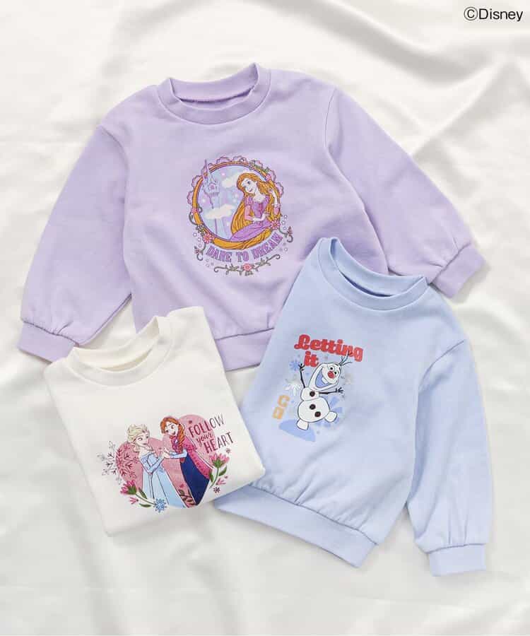 【9/18(木) 10:00~販売】≪子供服 apres les coursの「ディズニー」コレクション≫『アナと雪の女王』の「アナ」、「エルサ」、「オラフ」と『塔の上のラプンツェル』の「ラプンツェル」がモチーフの裏毛トレーナーが登場♪シンプルでどんなボトムにも合わせやすいトレーナーはこの秋冬に大活躍まちがいなし♪おでかけだけでなく、普段使いもしやすいWEB限定のアイテムです!ディズニーコレクション一覧はこちら>>お取り扱いのご注意>この商品は着用中の摩擦や洗濯により毛羽の乱れ、毛羽脱落、毛玉が生じることが有ります。できるだけ美しくご利用頂く為に次のことにご留意下さい。○毛玉は毛玉取り器またはハサミで丁寧にカットして下さい。○毛羽が他に付着した際はテープやブラシで除去して下さい。○他の製品とは洗わず、単独でお洗濯して下さい。○タンブル乾燥はお避け下さい。この商品のプリント部分は洗濯を繰り返すことにより、起毛・光沢が徐々に消失、ひび割れ、脱落することがあります。出来るだけ美しくご利用頂くために次のことにご留意下さい。○ 洗濯、保管の際、プリント面同士が重ならない様にご注意下さい。○ プリント部分のもみ洗いやタンブル乾燥機の使用はお避け下さい。○ 洗濯後、すみやかに広げて下さい。○ 脱水は弱く、形を整えてから干して下さい。○ プリント部分にアイロンを当てないで下さい。
