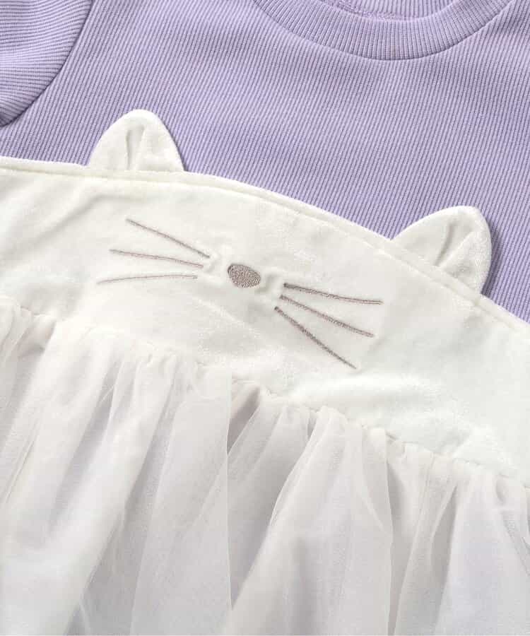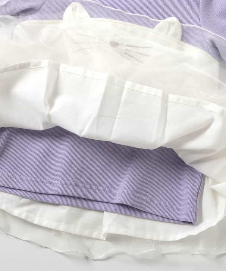 apres les cours(アプレレクール)のトレーナー「ネコモチーフチュールドッキングトップス」は、ナチュラルなスタイルにさりげなくデザインをプラスしたおしゃれアイテム*
