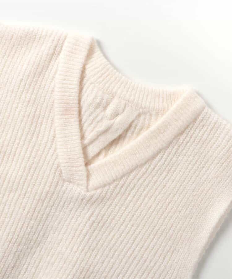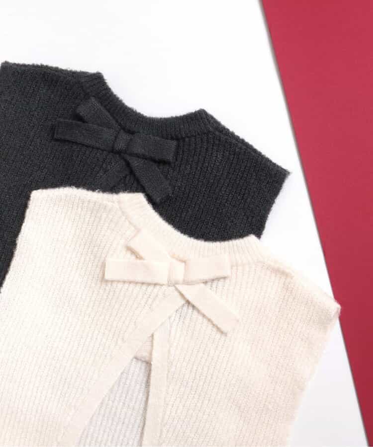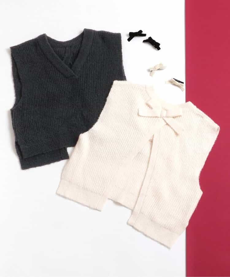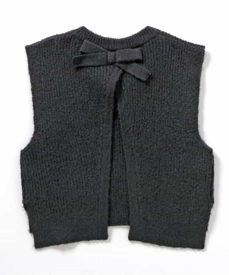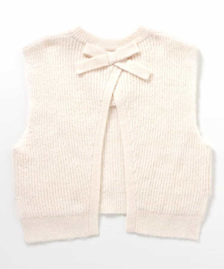 apres les cours(アプレレクール)のベスト・ジレ「後ろリボンショートニットベスト」は、これ一枚でいつものコーディネートがワンランクUPしちゃうおすすめアイテム!