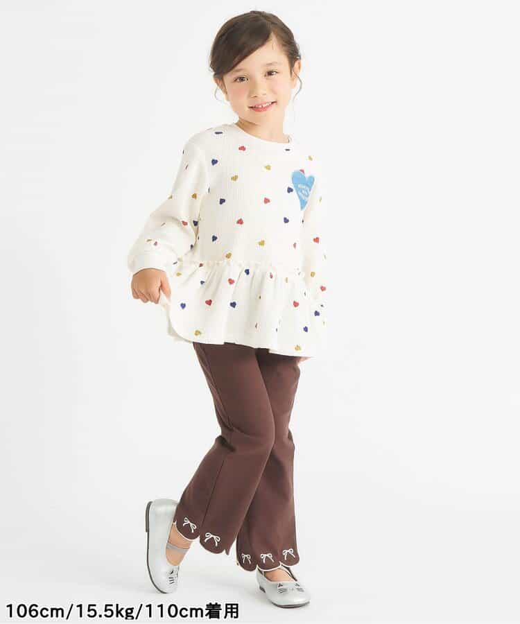 apres les cours(アプレレクール)の「WEB限定 裾スカラップカットソーパンツ」は、ナチュラルなスタイルにさりげなくデザインをプラスしたおしゃれアイテム*通園・通学用にもおすすめです♪