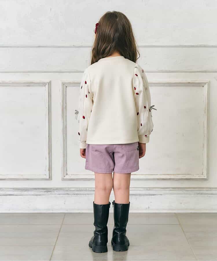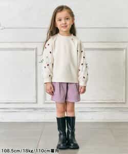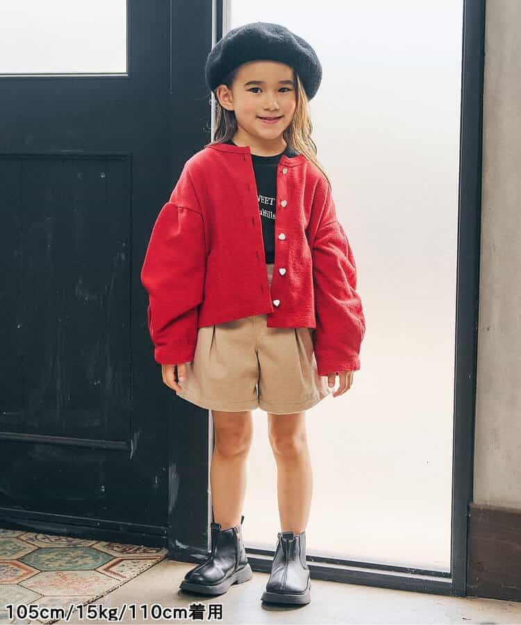 ベロアみたいな秋っぽい素材 生地は少し厚めかなって思う 太もも周りに余裕があって、ウエストもゴムなので動きやすそうです。 103cm17kg110サイズ着用 #PR