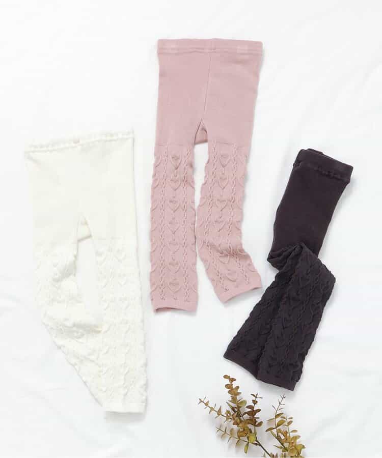 apres les cours(アプレレクール)のスパッツ・レギンス「ハートケーブル柄レギンス」は、足元からおしゃれになれるデザイン。おようふくとのスタイリングも楽しんで。