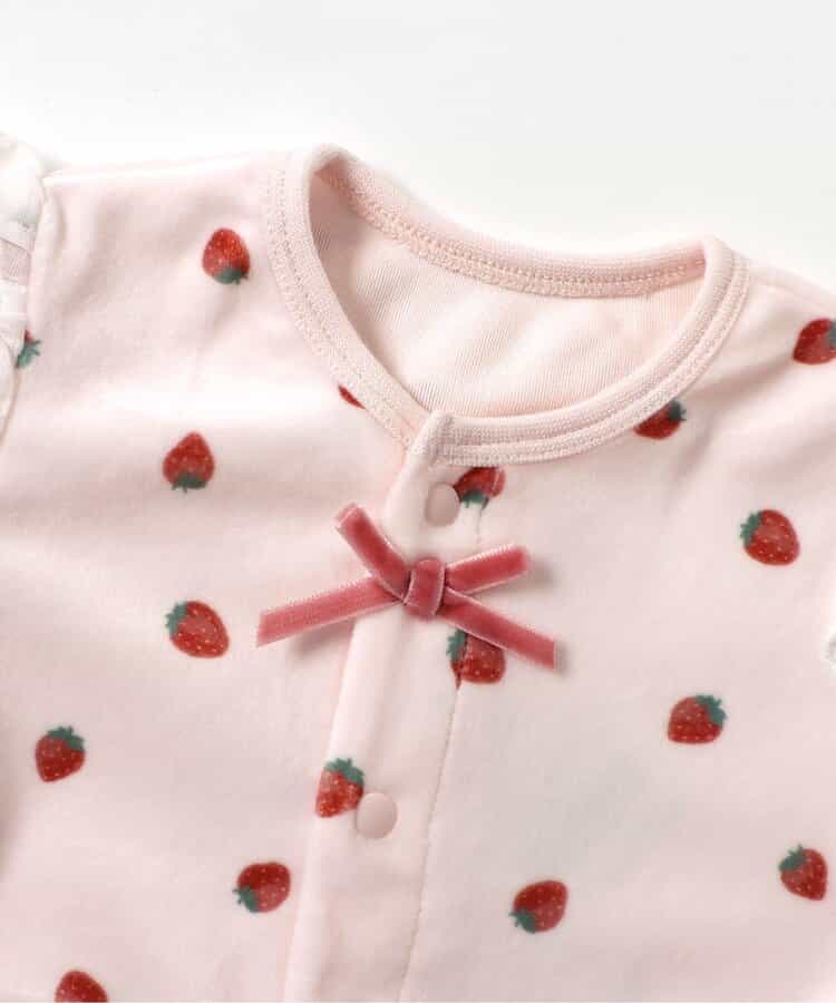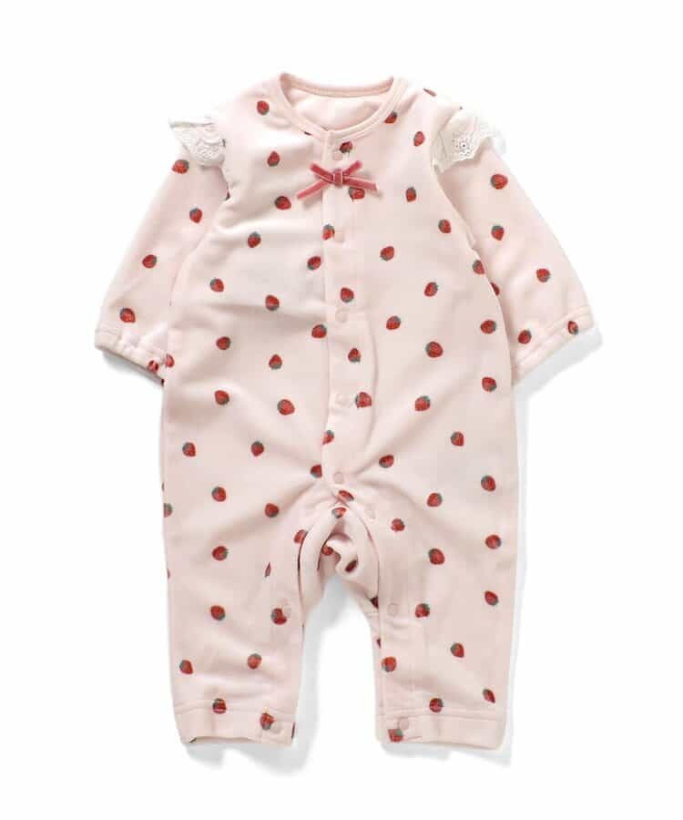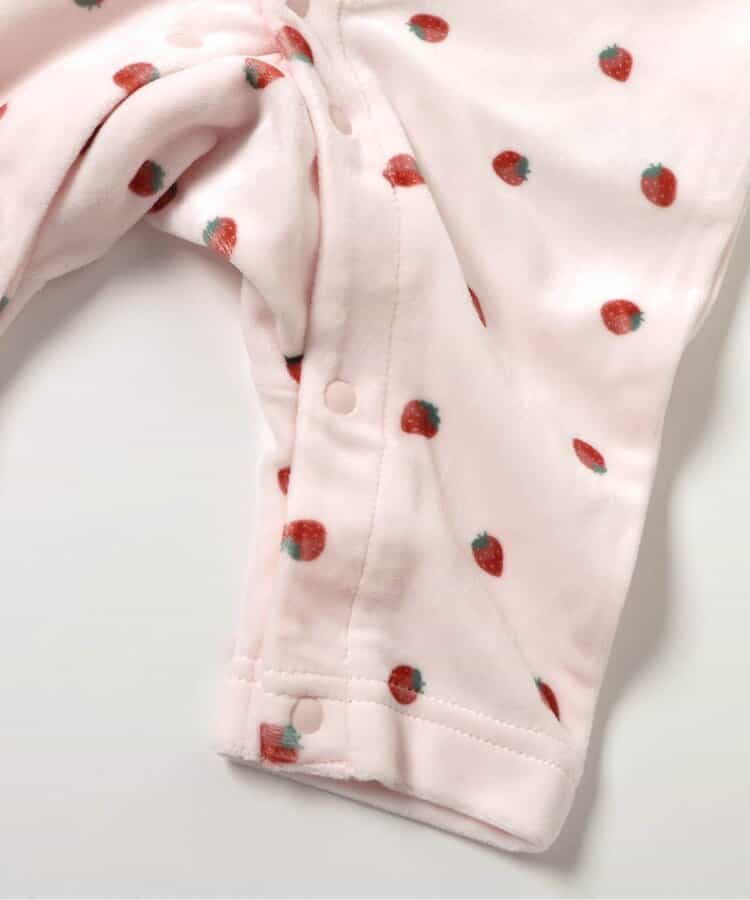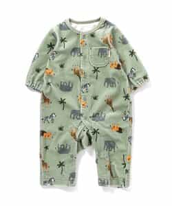 apres les cours(アプレレクール)のカバーオール・ロンパース「べロア総柄カバーオール」は、やさしいニュアンスのナチュラルなデザイン。ベビーギフトや出産祝いの主役にも♪