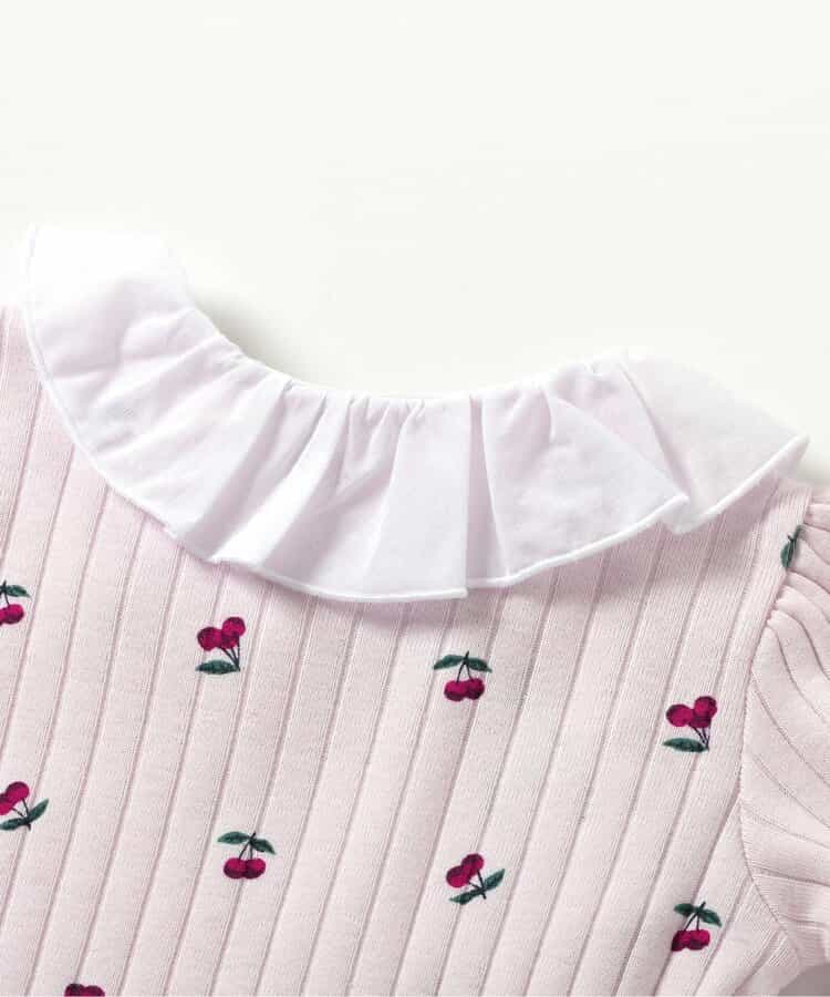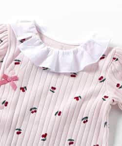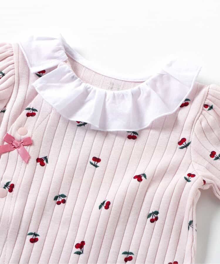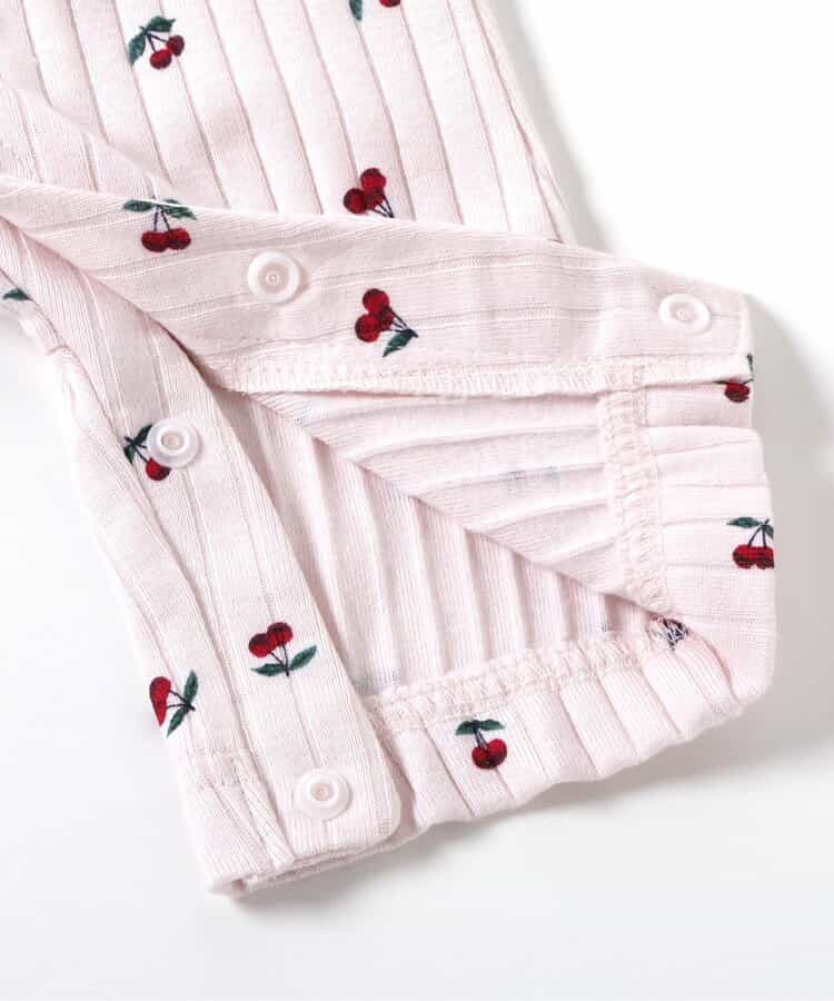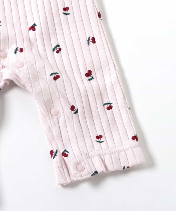 【6/13(金)21:00~販売】apres les cours(アプレレクール)のカバーオール・ロンパース「サクランボ柄カバーオール」は、やさしいニュアンスのナチュラルなデザイン。ベビーギフトや出産祝いの主役にも♪