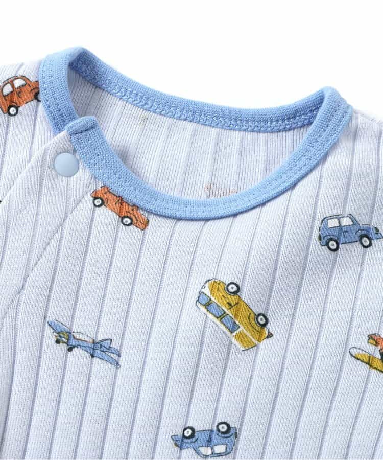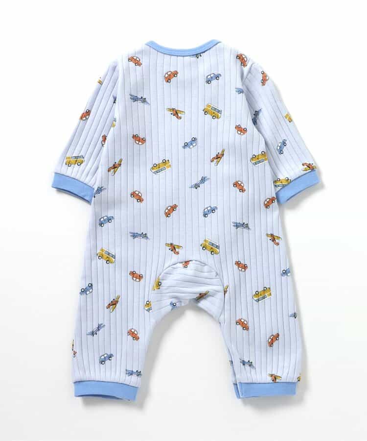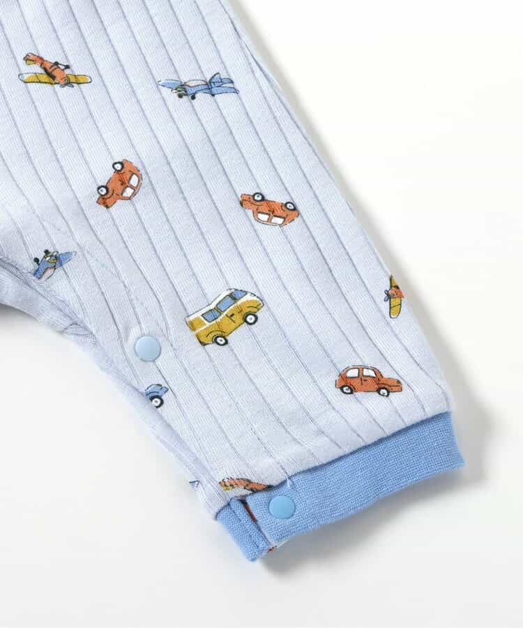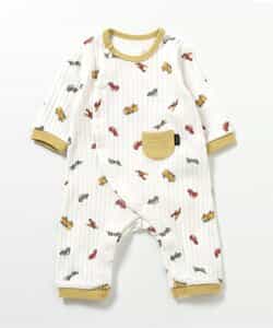 【6/12(木)21:00~販売】apres les cours(アプレレクール)のカバーオール・ロンパース「のりもの柄カバーオール」は、やさしいニュアンスのナチュラルなデザイン。ベビーギフトや出産祝いの主役にも♪