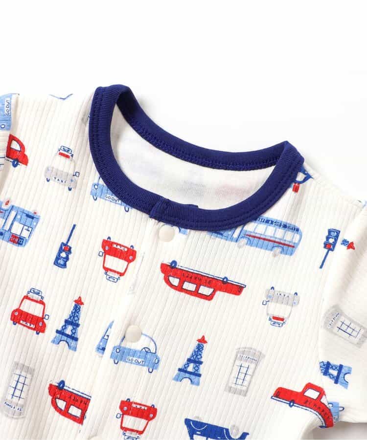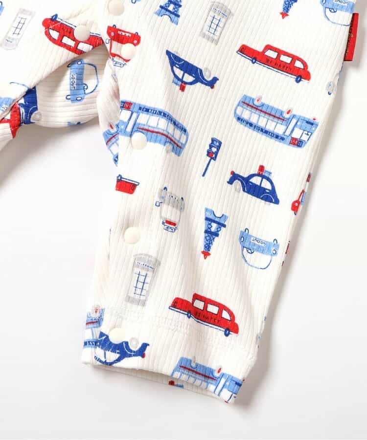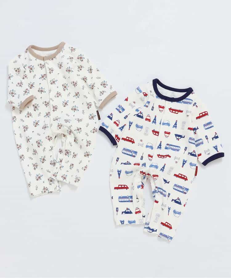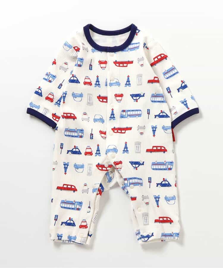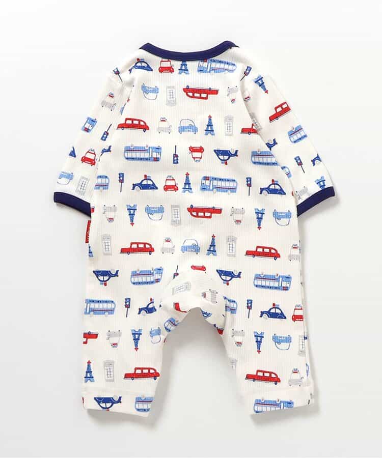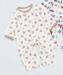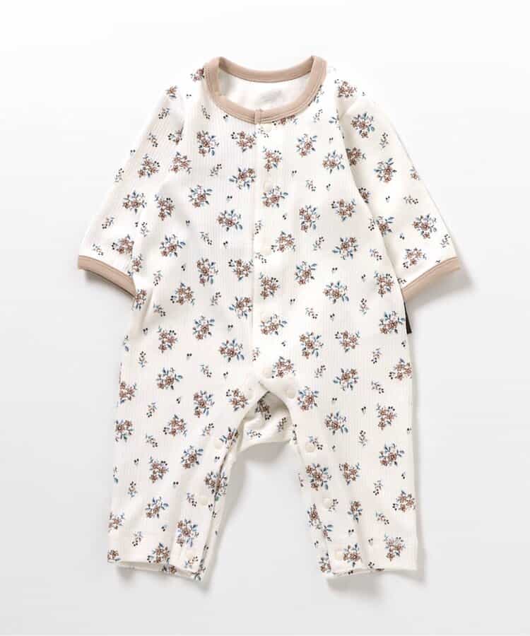 apres les cours(アプレレクール)のカバーオール・ロンパース「リブ総柄カバーオール」は、やさしいニュアンスのナチュラルなデザイン。ベビーギフトや出産祝いの主役にも♪
