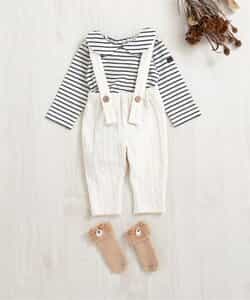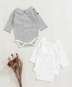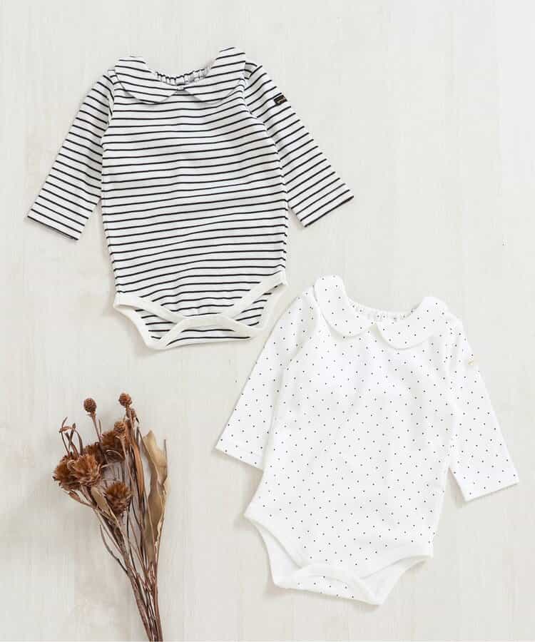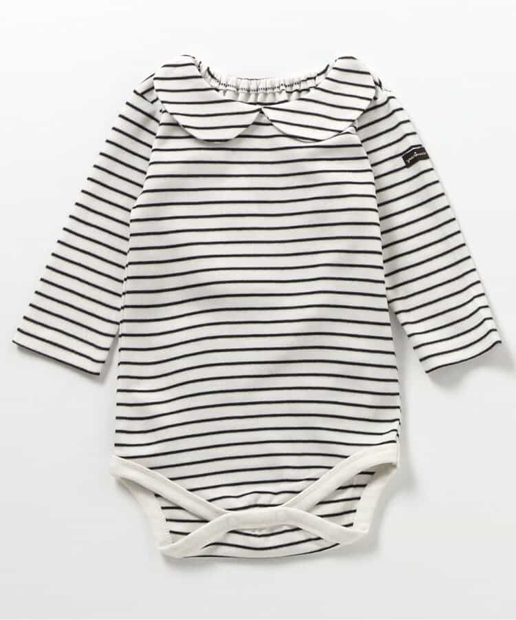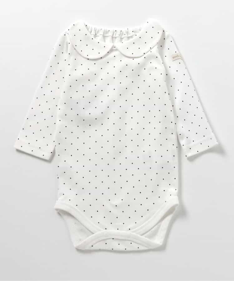 apres les cours(アプレレクール)のカバーオール・ロンパース「丸襟ボディースーツ」は、やさしいニュアンスのナチュラルなデザイン。ベビーギフトや出産祝いの主役にも♪
