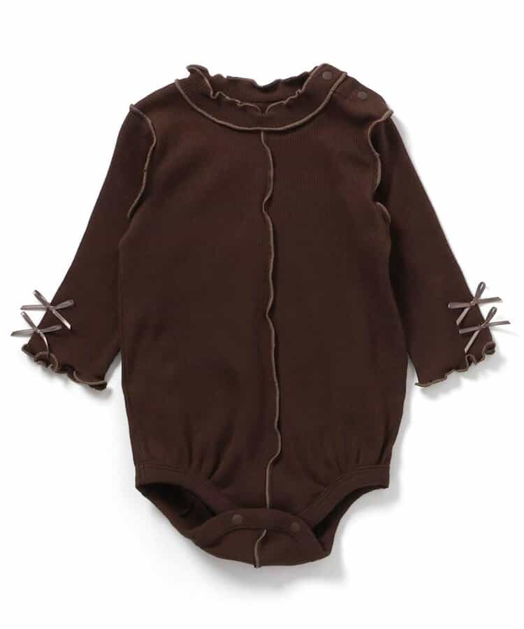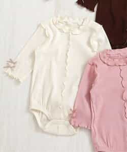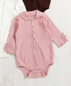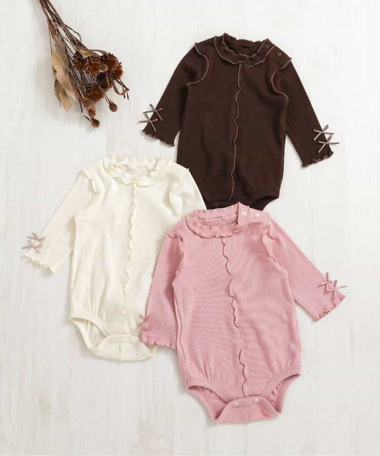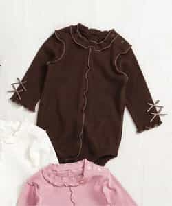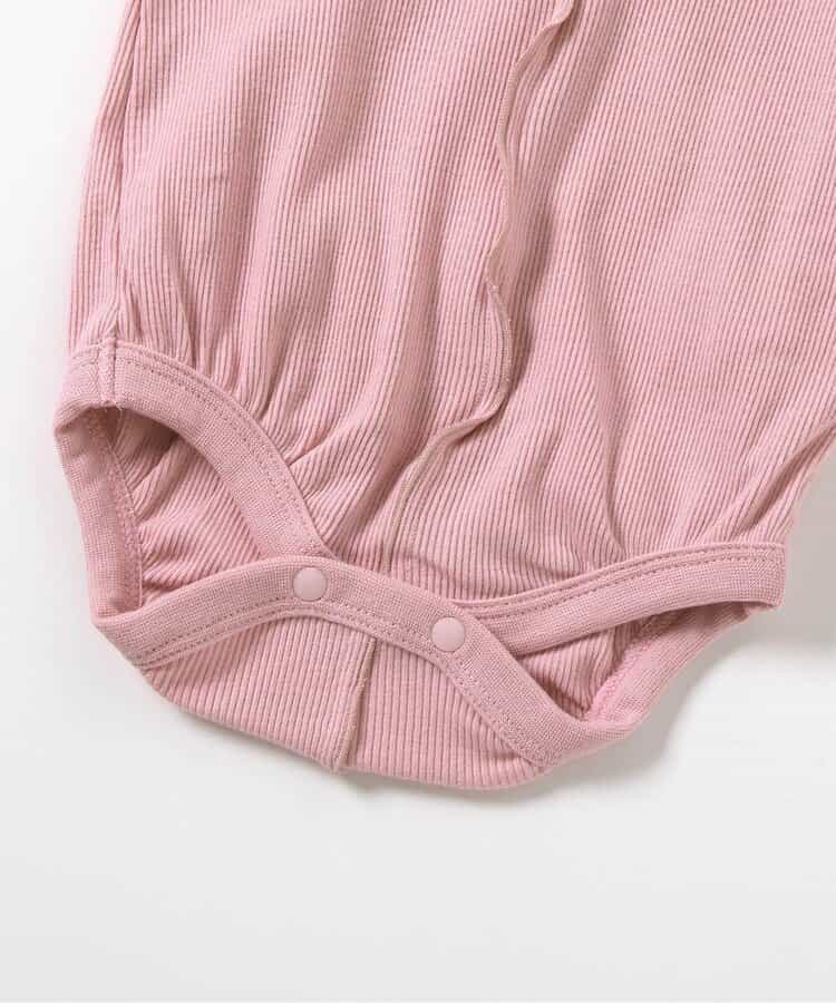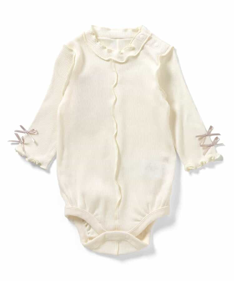apres les cours(アプレレクール)のカバーオール・ロンパース「メロウリブボディースーツ」は、やさしいニュアンスのナチュラルなデザイン。ベビーギフトや出産祝いの主役にも♪