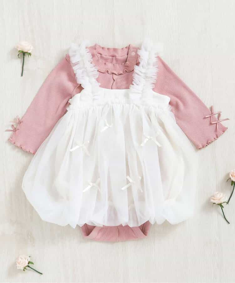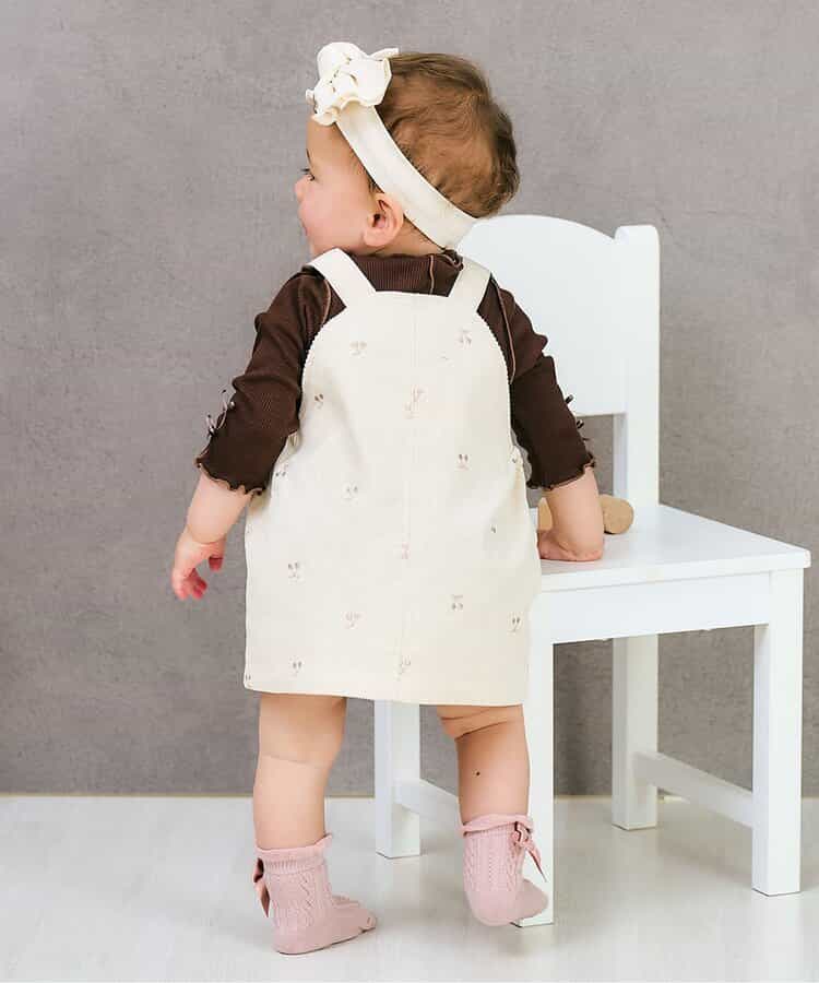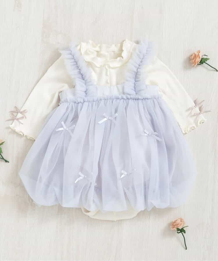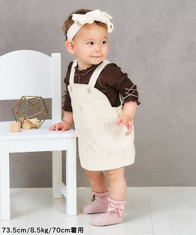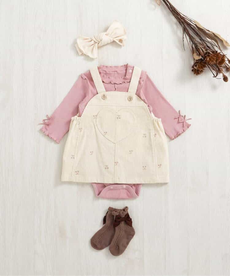 apres les cours(アプレレクール)のカバーオール・ロンパース「メロウリブボディースーツ」は、やさしいニュアンスのナチュラルなデザイン。ベビーギフトや出産祝いの主役にも♪