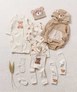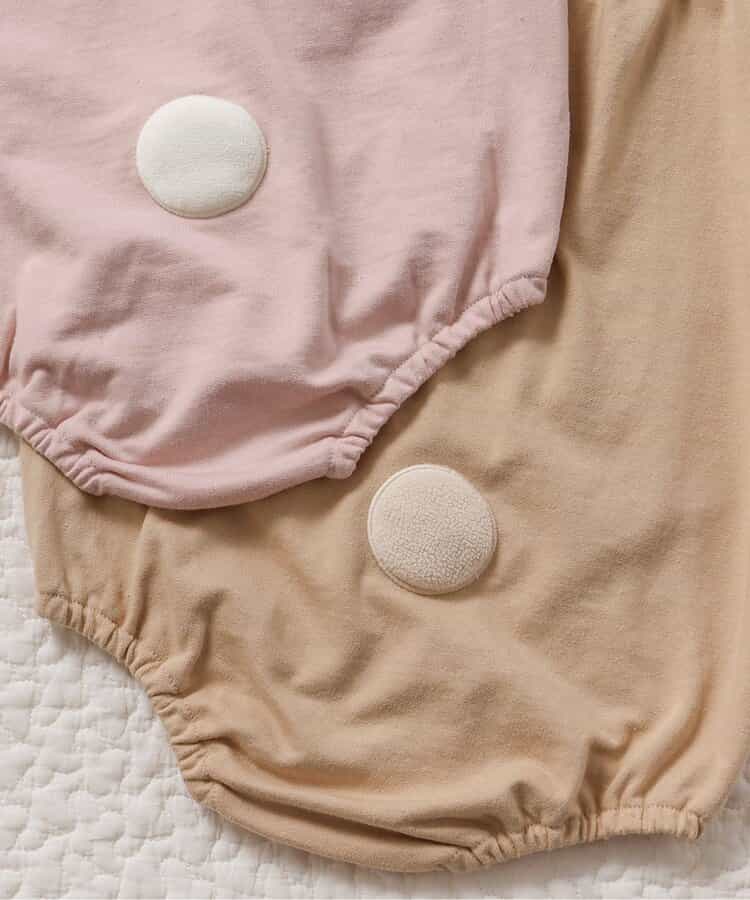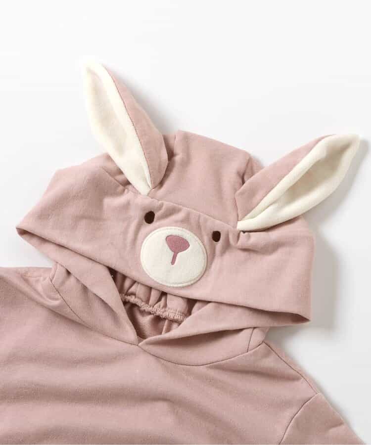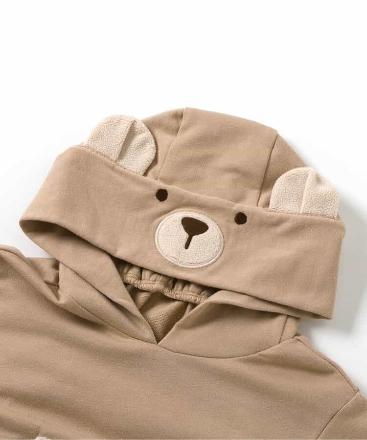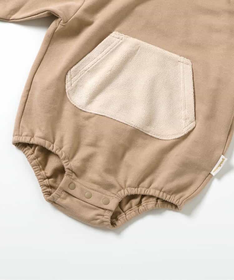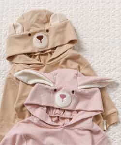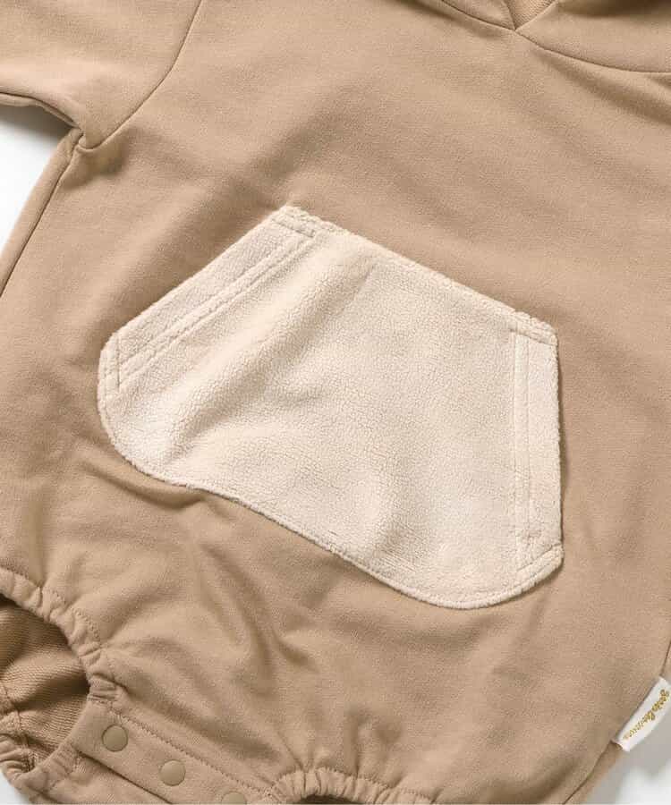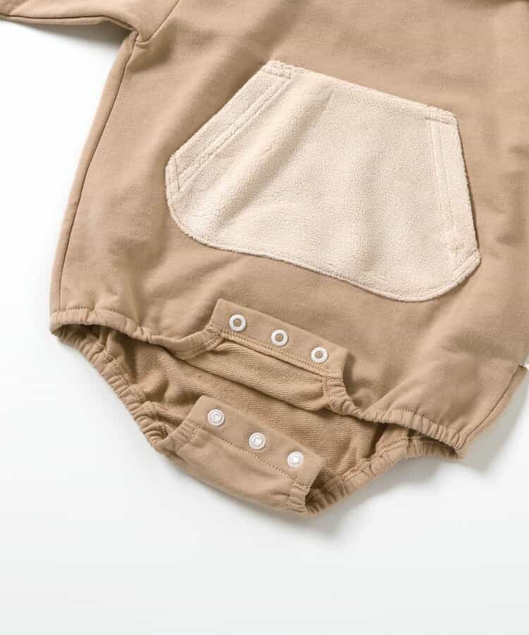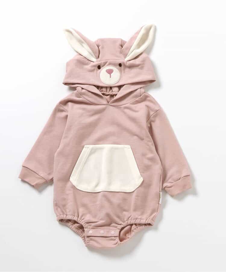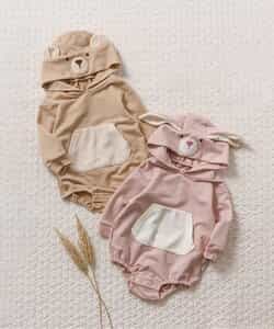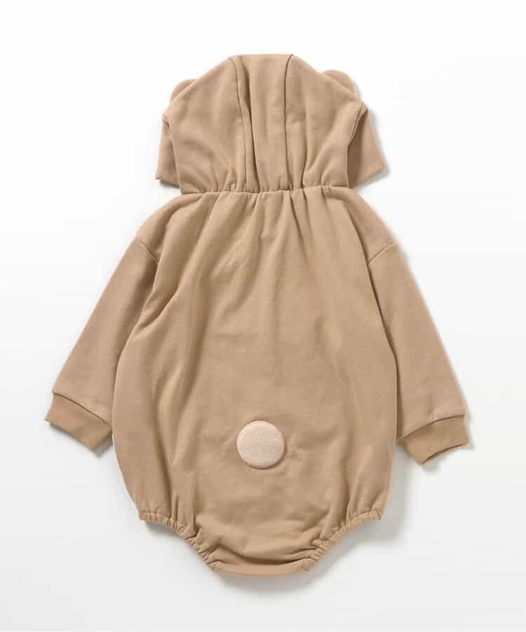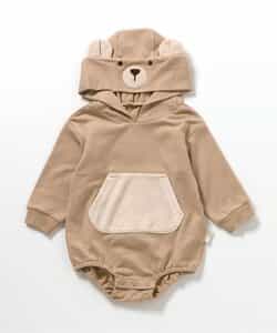 apres les cours(アプレレクール)のカバーオール・ロンパース「アニマルフード付きボディースーツ」は、やさしいニュアンスのナチュラルなデザイン。ベビーギフトや出産祝いの主役にも♪