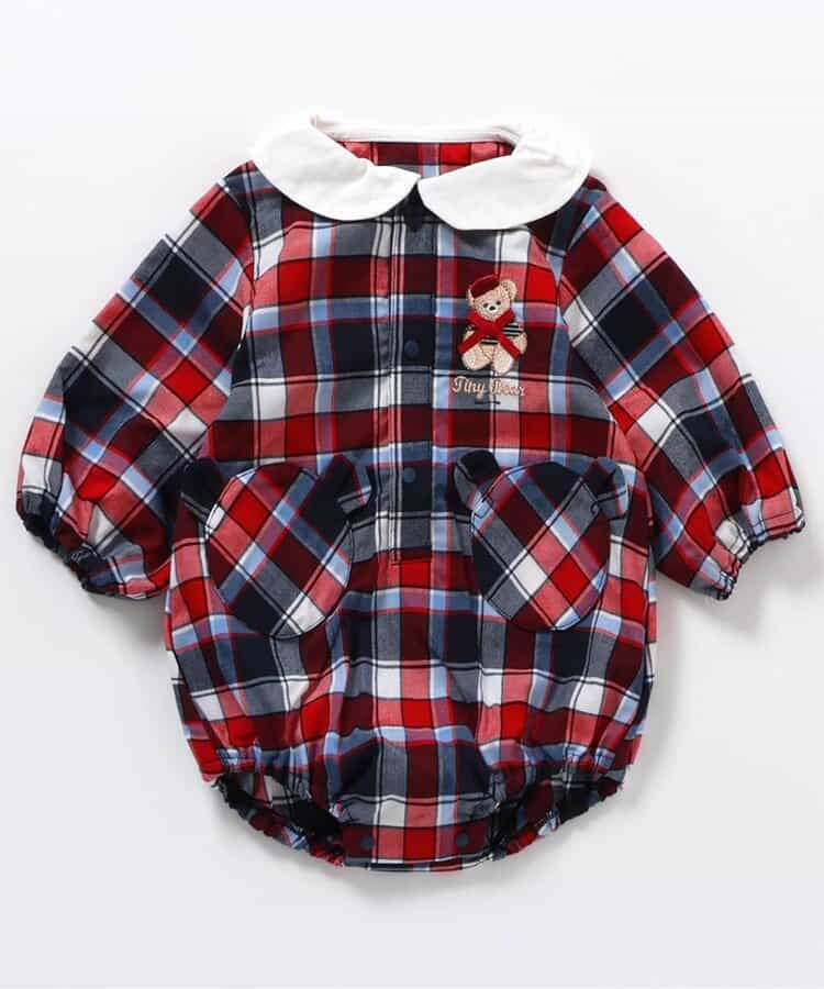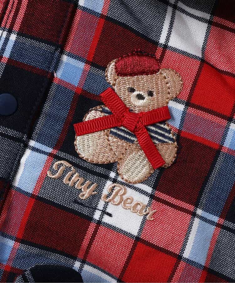 胸元にタイニーベアが刺繍されているチェック柄の2色展開。