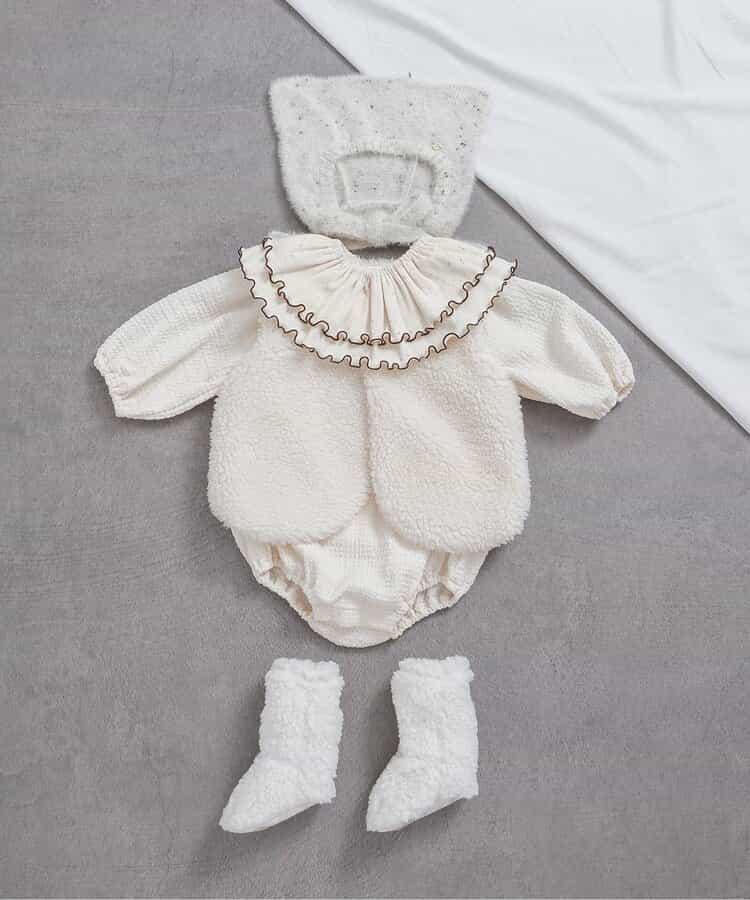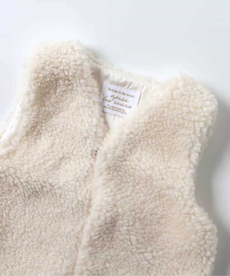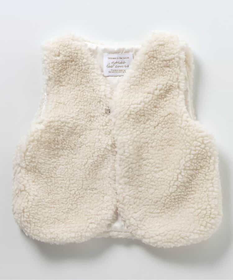 apres les cours(アプレレクール)の胴着・ベスト「ベビーボアベスト」は、やさしいニュアンスのナチュラルなデザイン。ベビーのコーデにおしゃれさをプラス♪
