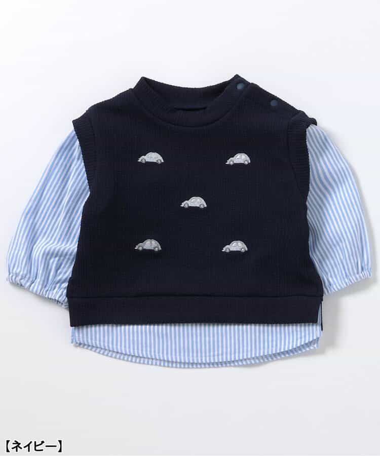 apres les cours(アプレレクール)のトップス・パンツ「モチーフ刺繍ベストレイヤードセットアップ」は、やさしいニュアンスのナチュラルなデザイン。ベビーギフトや出産祝いの主役にも♪