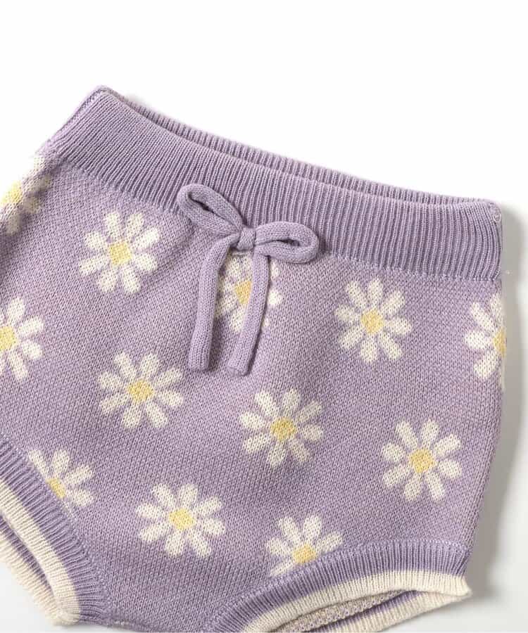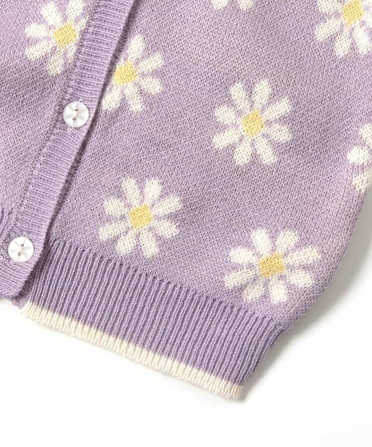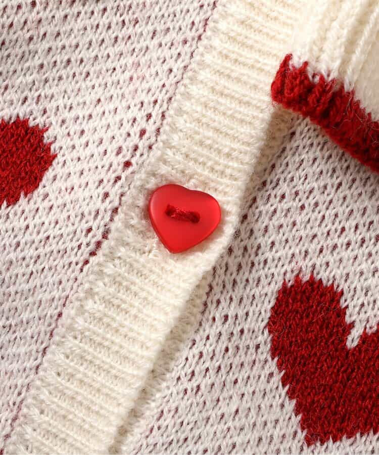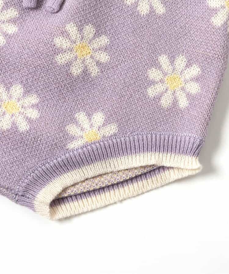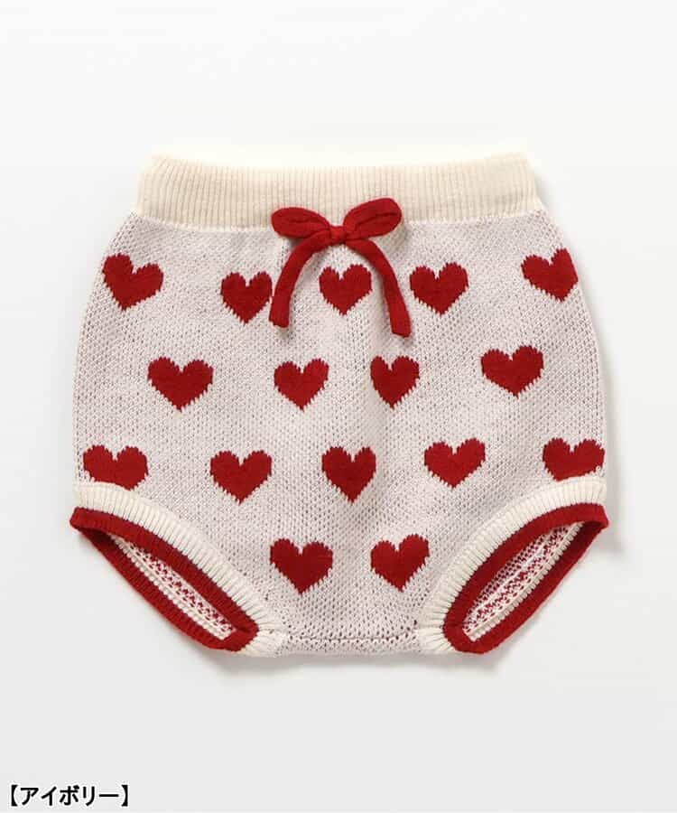 apres les cours(アプレレクール)の「【リンク】ハート・フラワー衿フリルニットセットアップ」は、やさしいニュアンスのナチュラルなデザイン。ベビーギフトや出産祝いの主役にも♪