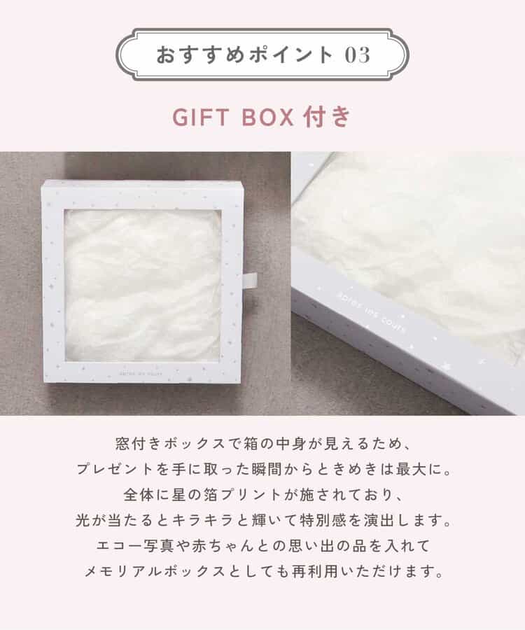 エコー写真や赤ちゃんとの思い出の品を入れてメモリアルボックスとしても再利用いただけます。