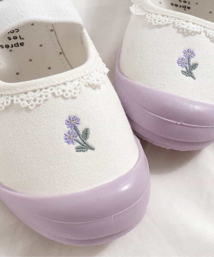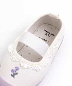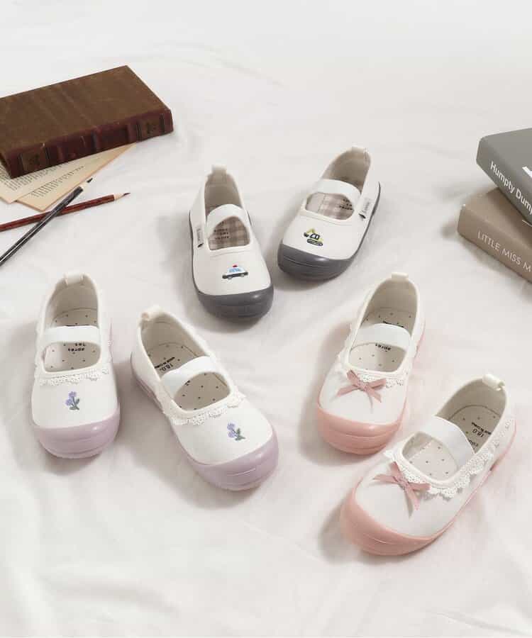 通園通学や習い事など室内用で使っていただける上履き◎刺繍やリボンがとっても可愛いデザイン♪チャコールは左右で異なる車の刺繍が入っておりラベンダーとピンクはレースのフリルがキュートです?習い事や通園通学はもちろん入園入学のご準備にも・・・♪