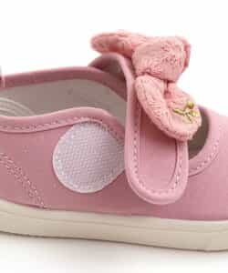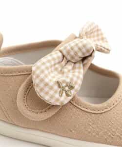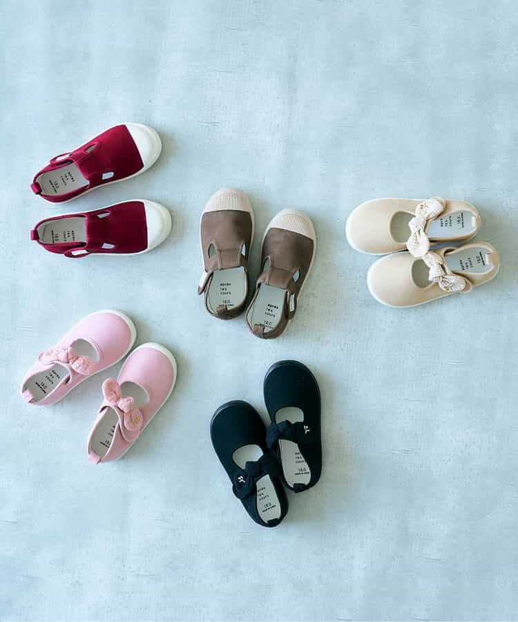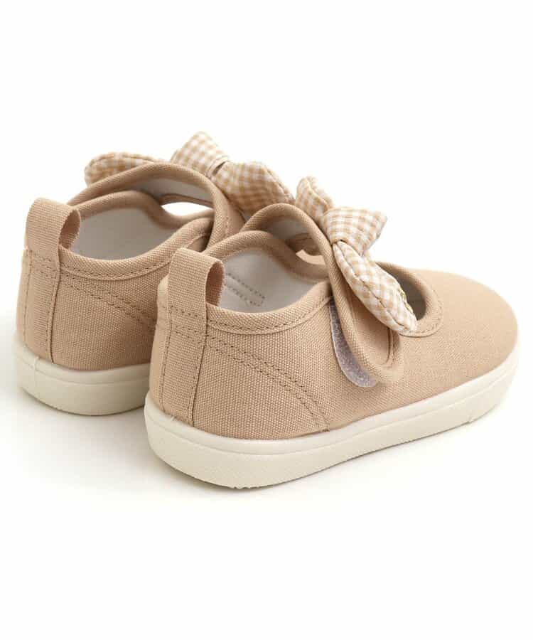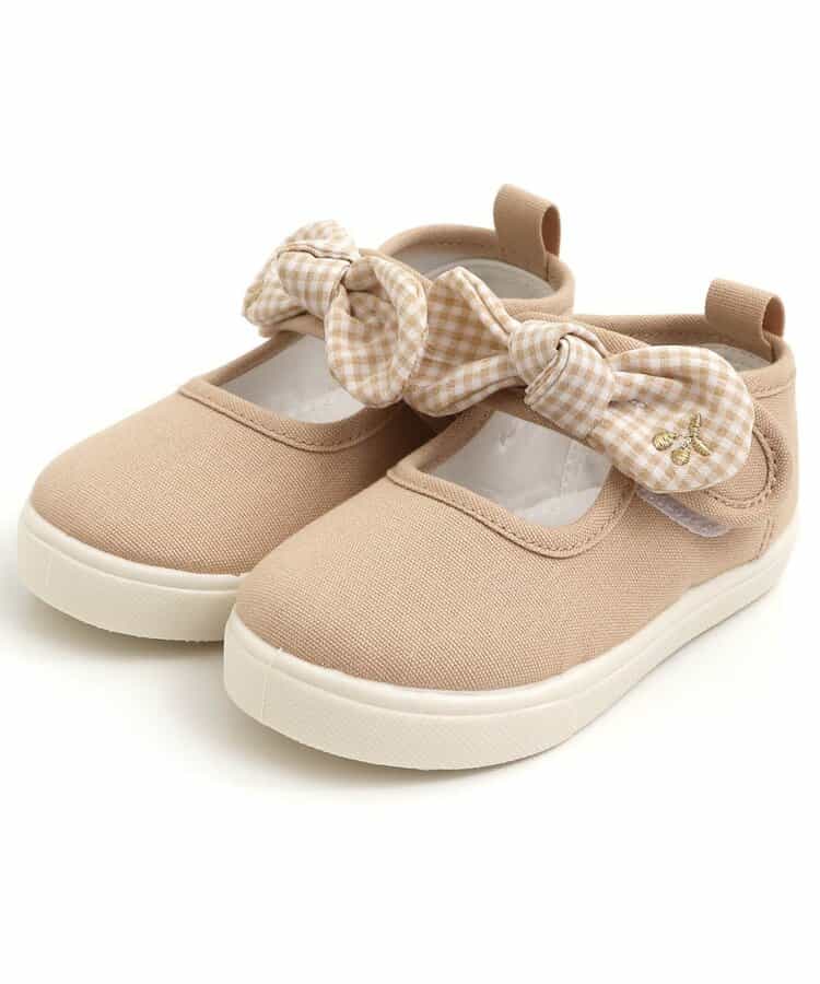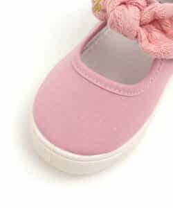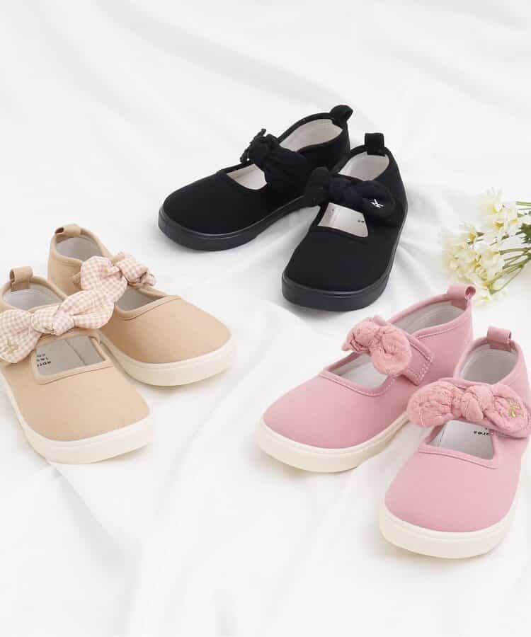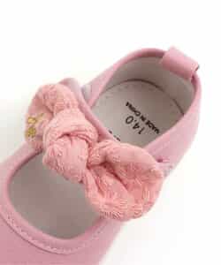 シンプルなデザインでリボンが特徴的なパンプス風のスニーカー♪リボンにはワンポイントでさくらんぼの刺繍入り♪*マジックテープ仕様なのでお子様でもスポッと簡単に着脱可能です◎