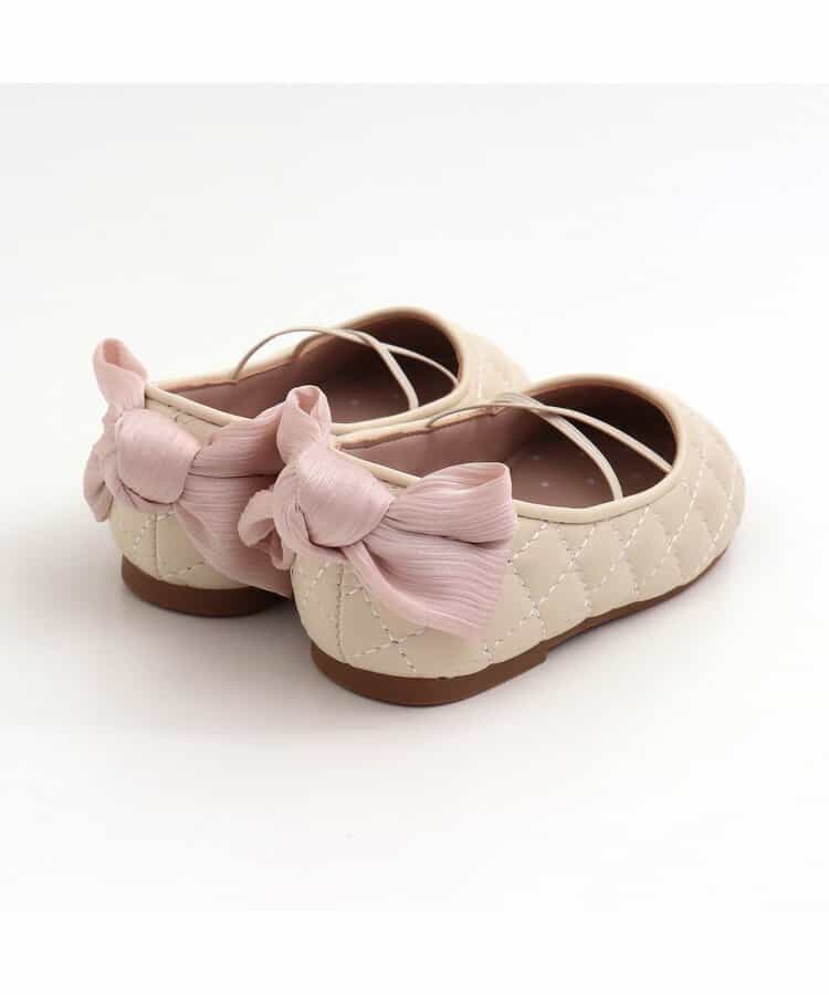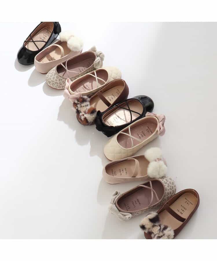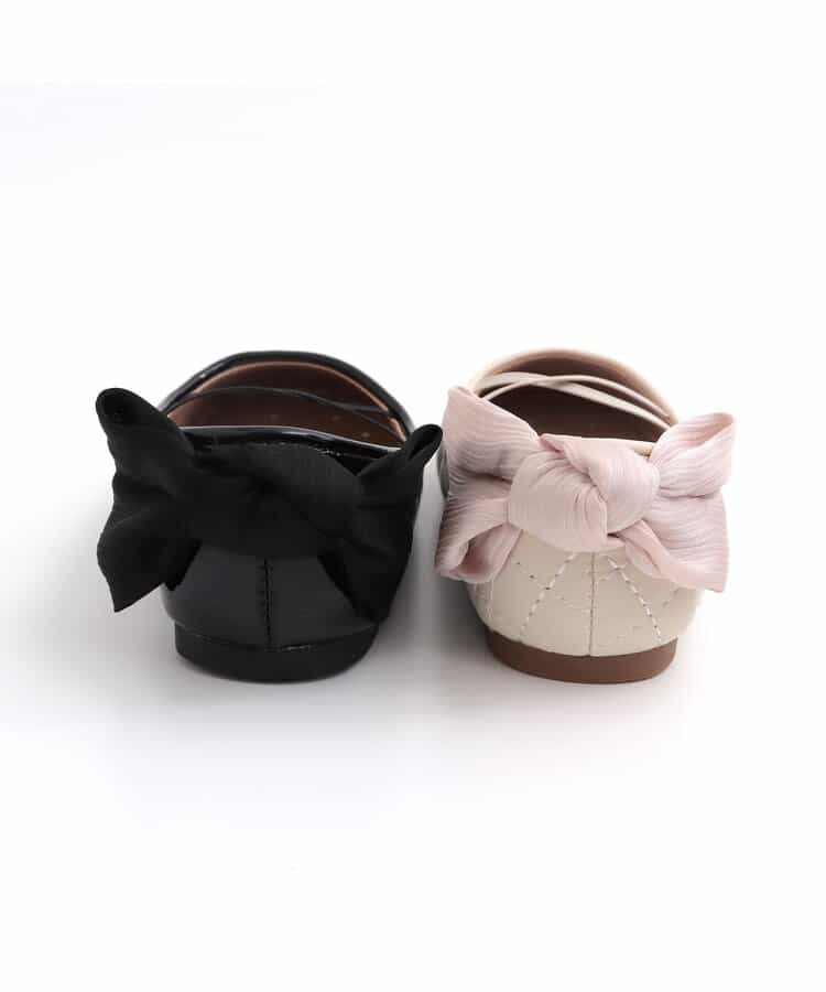 apres les cours(アプレレクール)の靴「リボン付きバレエシューズ」は、足元からおしゃれになれるデザイン。おようふくとのスタイリングも楽しんで。