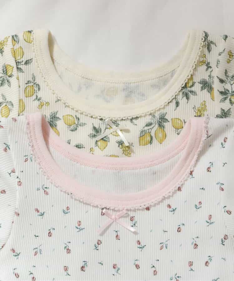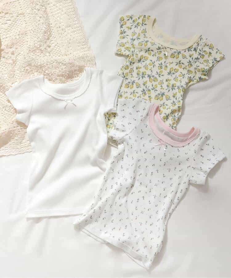 apres les cours(アプレレクール)の肌着「GIRLSリブ半袖肌着」は、手頃な価格とおしゃれなデザインが人気!毎日着るものだからかわいいインナーで♪