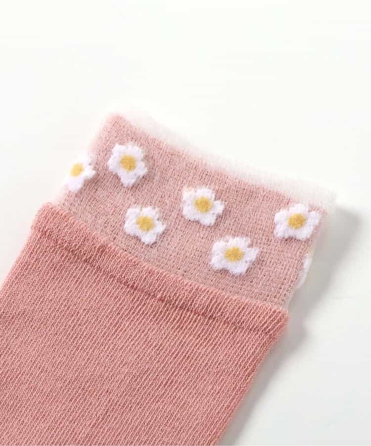 apres les cours(アプレレクール)のタイツ・ソックス「お花・ハート折り返しソックス」は、足元からおしゃれになれるデザイン。おようふくとのスタイリングも楽しんで。靴下のSS・S・10-12cm・13-15cm、タイツの70-80cm・80-90cm・90-100cmには基本的に靴下に滑り止め加工がございます。(一部除外あり)