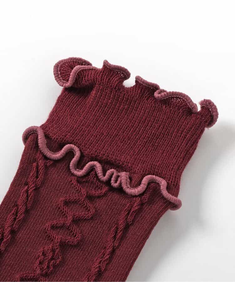 apres les cours(アプレレクール)のタイツ・ソックス「メロウケーブルハイソックス」は、足元からおしゃれになれるデザイン。おようふくとのスタイリングも楽しんで。靴下のSS・S・10-12cm・13-15cm、タイツの70-80cm・80-90cm・90-100cmには基本的に靴下に滑り止め加工がございます。(一部除外あり)