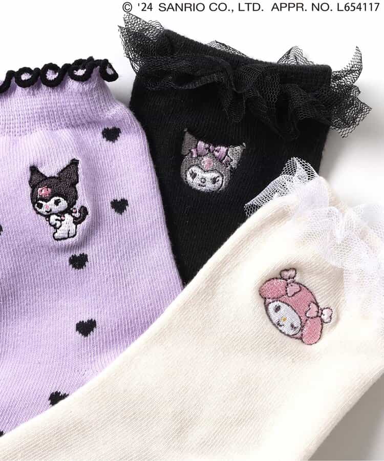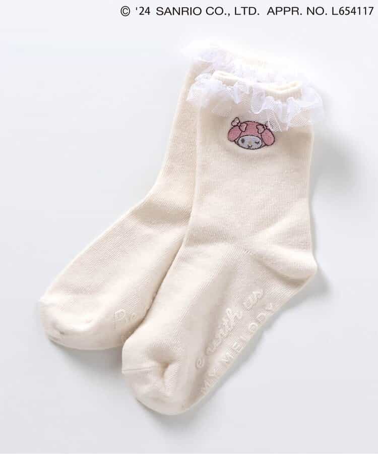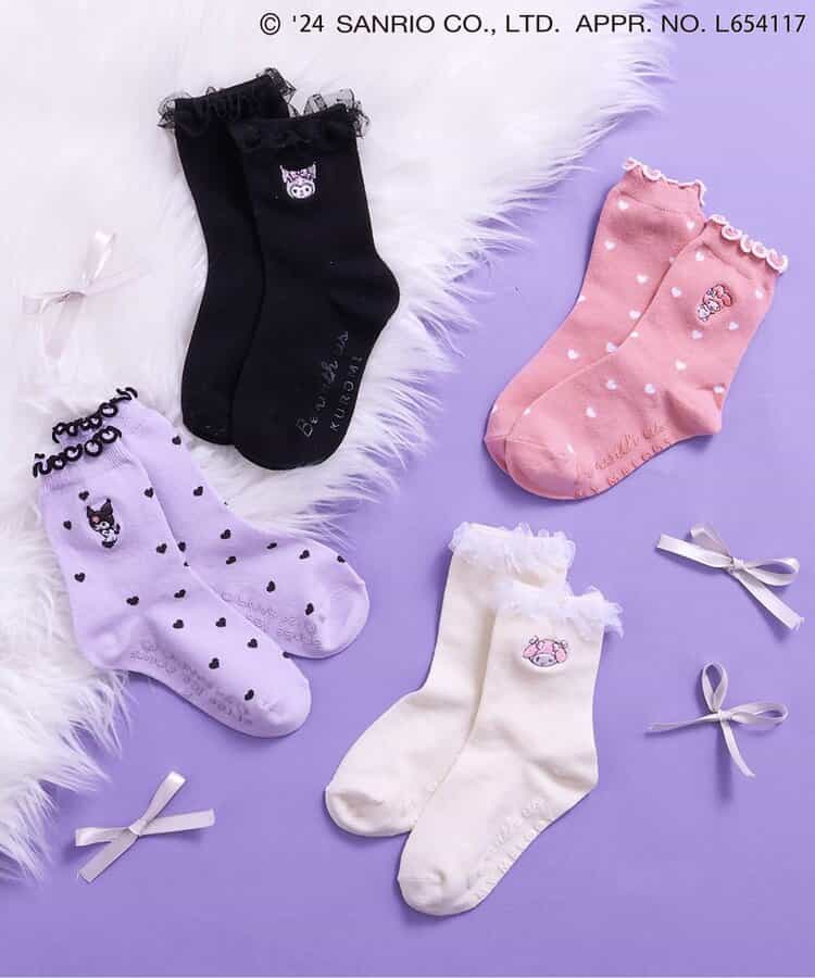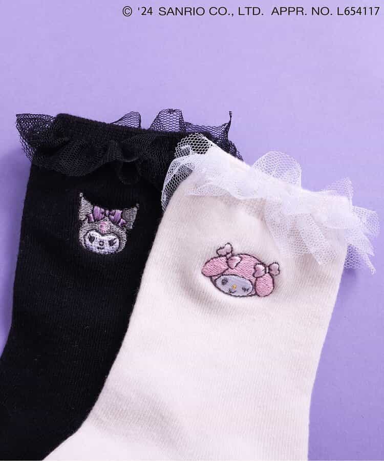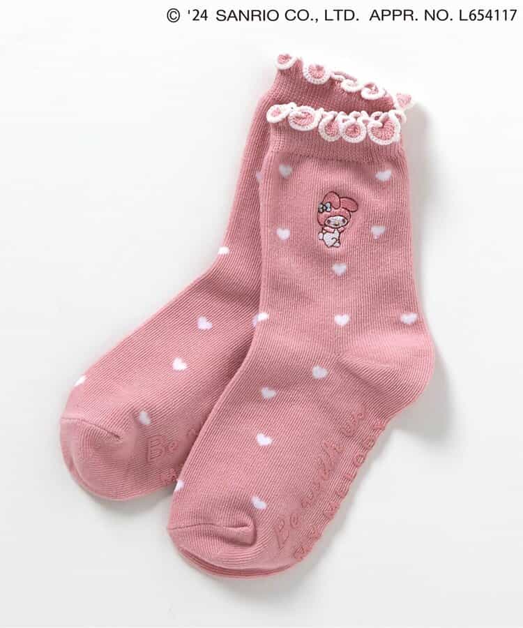 マイメロ・クロミのワンポイントやフリルが付いたキュートなデザイン♪パンプスやブーツと合わせたコーディネートもおすすめです。靴下のSS・S・10-12cm・13-15cm、タイツの70-80cm・80-90cm・90-100cmには基本的に靴下に滑り止め加工がございます。(一部除外あり)