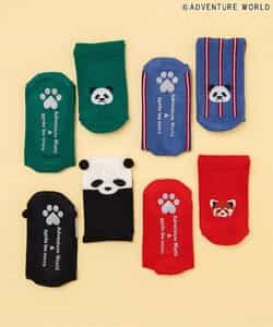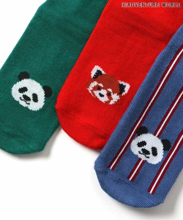 全色デザインが違うソックスは色違いで集めたくなるほどかわいいです♪足裏には足跡柄のかわいい滑り止めが付いています!ママやパパも履けるサイズ展開もあるので、ファミリーリンクコーデもたのしめます!ソックスでさりげないおそろいコーデも、おすすめです◎<ブラック>履き口部分がジャイアントパンダの顔のデザインに。パンダの耳がポンポンになっています。<グリーン>足先にジャイアントパンダの顔がプリントされたシンプルなデザイン。<レッド>足先にレッサーパンダの顔がプリントされた、シンプルなデザイン。<ストライプ>ストライプ柄で、足先にジャイアントパンダの顔がプリントされたデザイン。