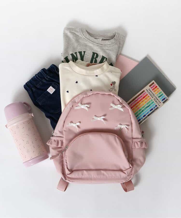 apres les cours(アプレレクール)のバッグ「メニーリボンリュック」は、おでかけに便利なだけでなく、コーディネートのポイントにも*